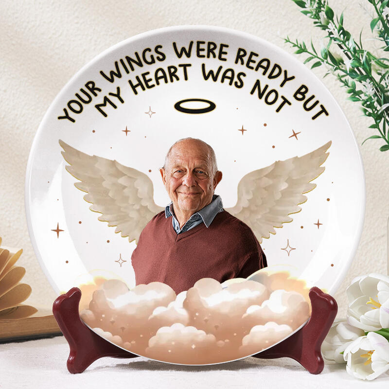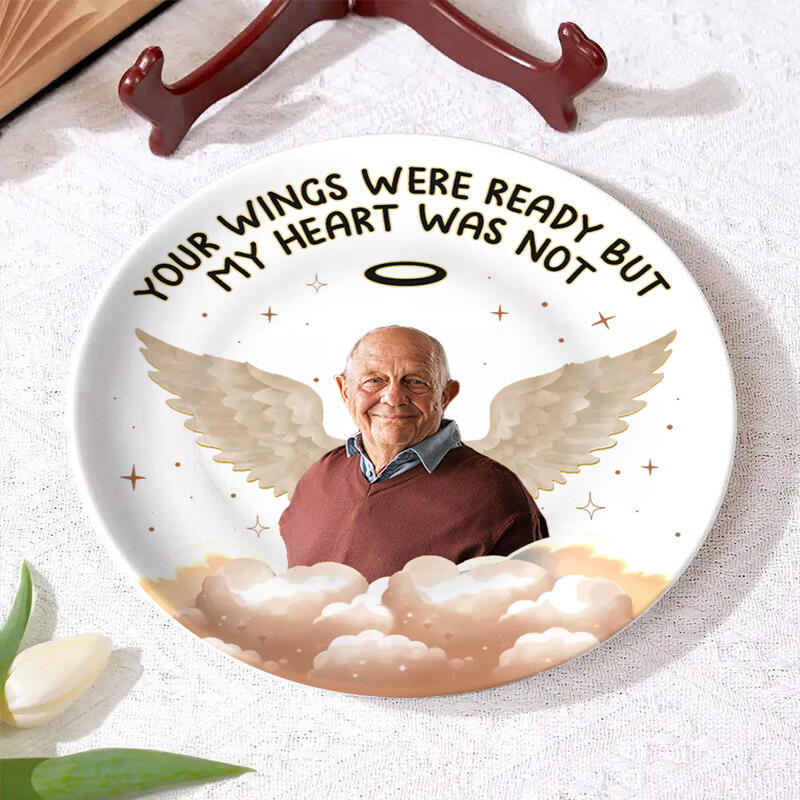 Personalized Picture Plate with Wings Pattern Beautiful Gift for Grandma