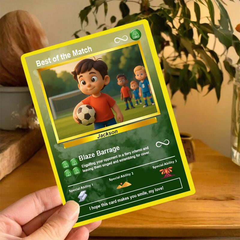 Transform your precious memories into one-of-a-kind keepsakes. Whether it's a snapshot of your adventures, a photo of your beloved pet, or any cherished image, we can seamlessly incorporate it into the card. Further personalize it by adding your name or the name of a special someone and customizing it with a heartwarming message, making this card a gift that's truly yours.
