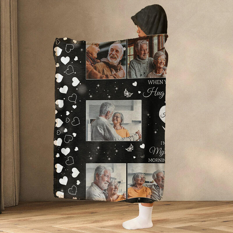 Personalized Picture Wearable Blanket Hoodie with Heart Pattern Memorial Gift for Family