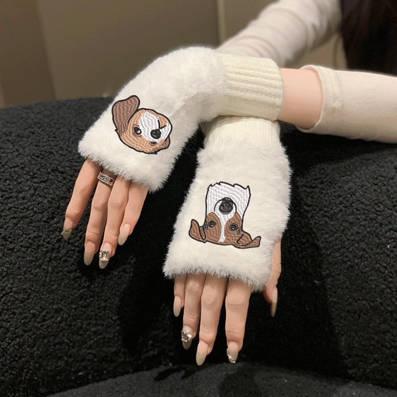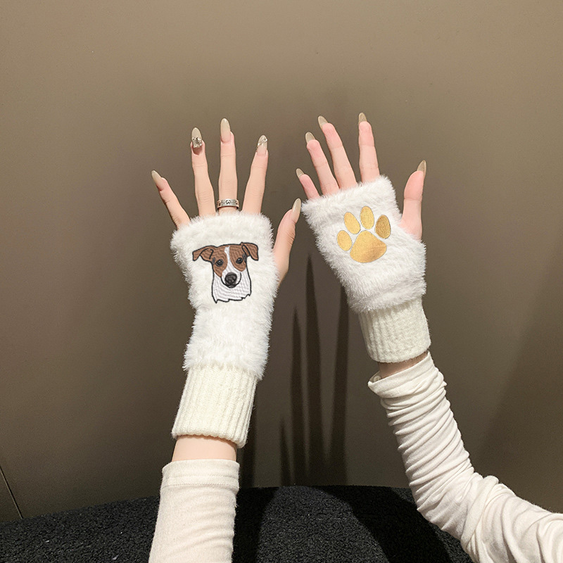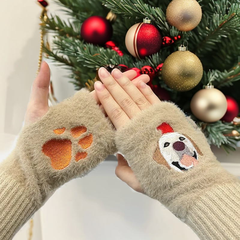 Personalized Plush Gloves with Custom Embroidered Pattern Warm Winter Gifts for Pet Lovers