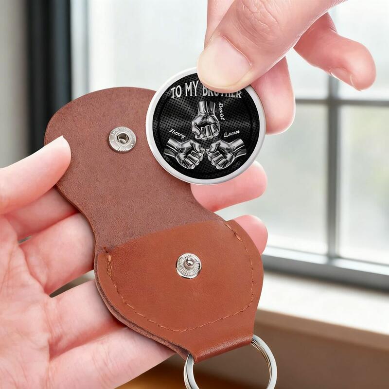 Personalized Pocket Hug Mini Leather Keychain Long-Distance Gift for Best Friend