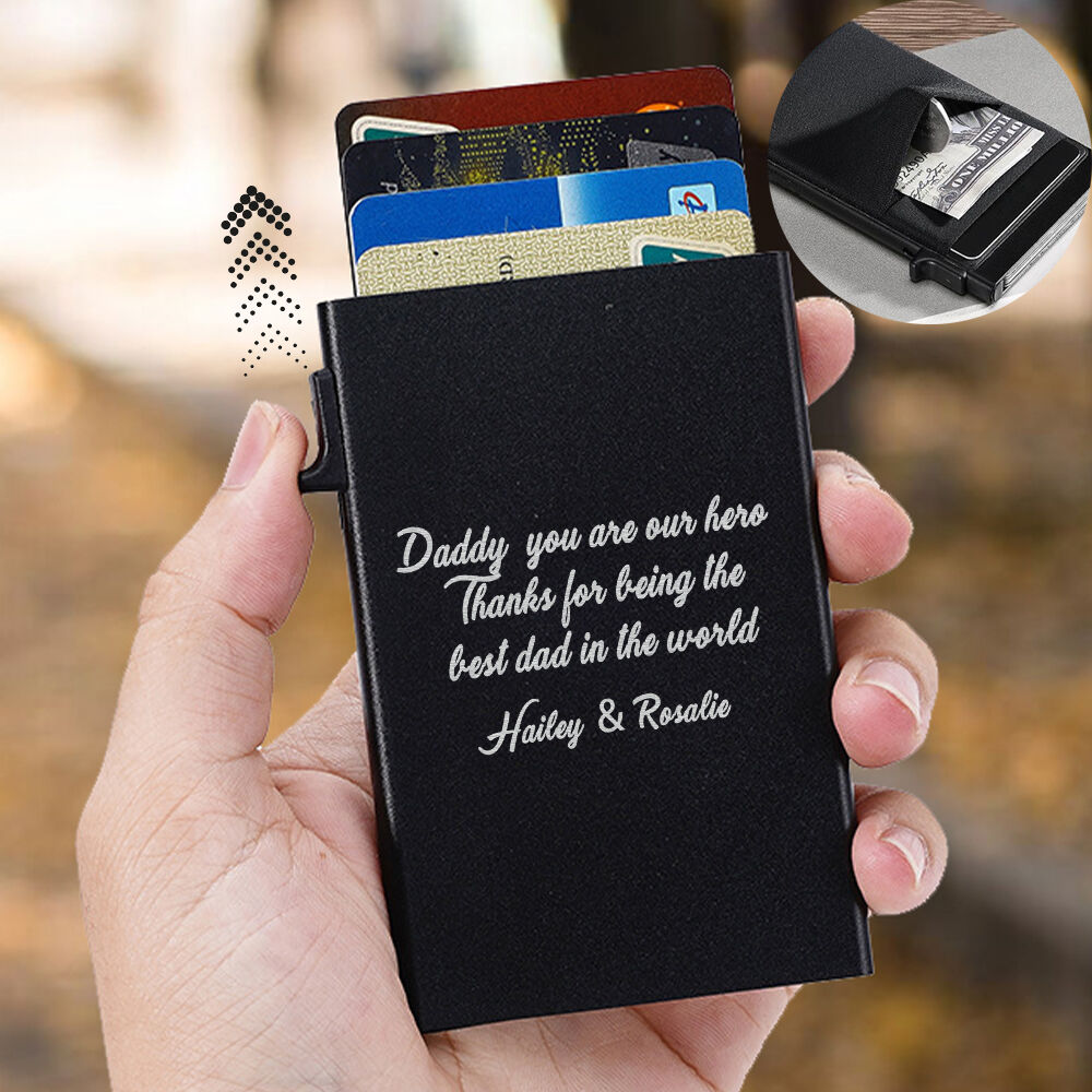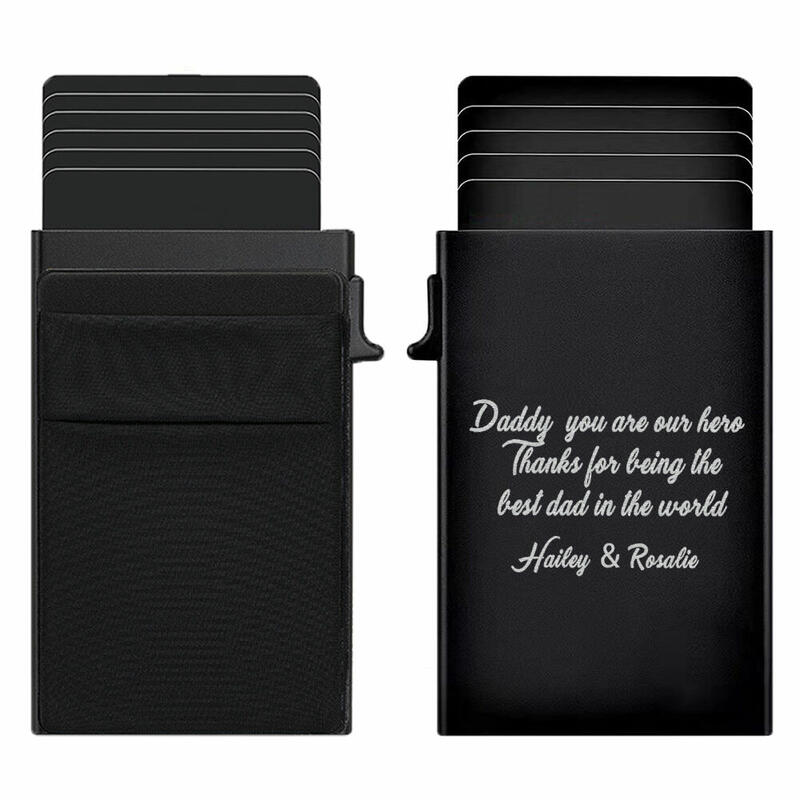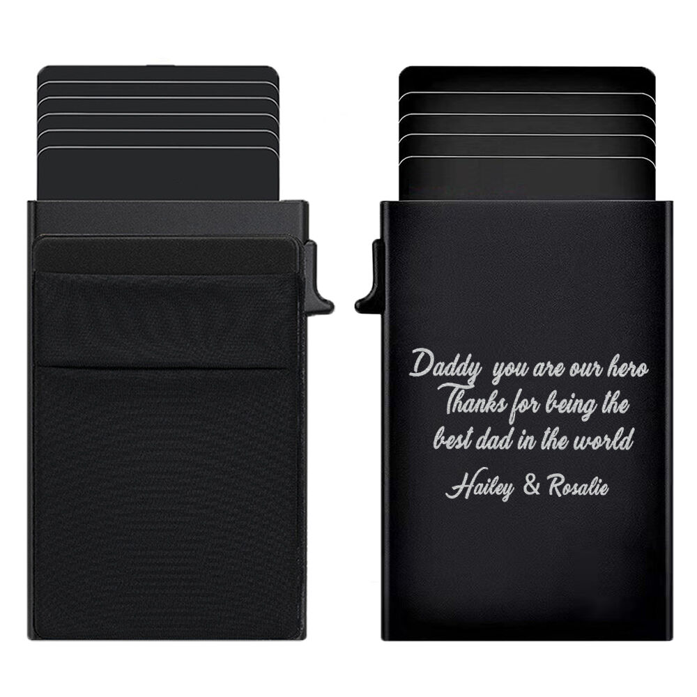 Surprise the man in your life with this eye-catching pop-up card holder, a stylish accessory that can be used not only to carry the essentials, but also to pay tribute to the incredible role he plays in your life. Perfect for any occasion, Father's Day, Valentine's Day, birthdays, this pop-up card holder makes a thoughtful gift. Not only can it be customized with a meaningful photo, date, or warm mandarin, but its durable design ensures it will last for years, while the smooth finish adds a touch of sophistication. Every time he reaches for it, he'll be reminded of the love and admiration his family has for him. Pay tribute to a true legend by gifting him this one-of-a-kind pop-up card holder!
