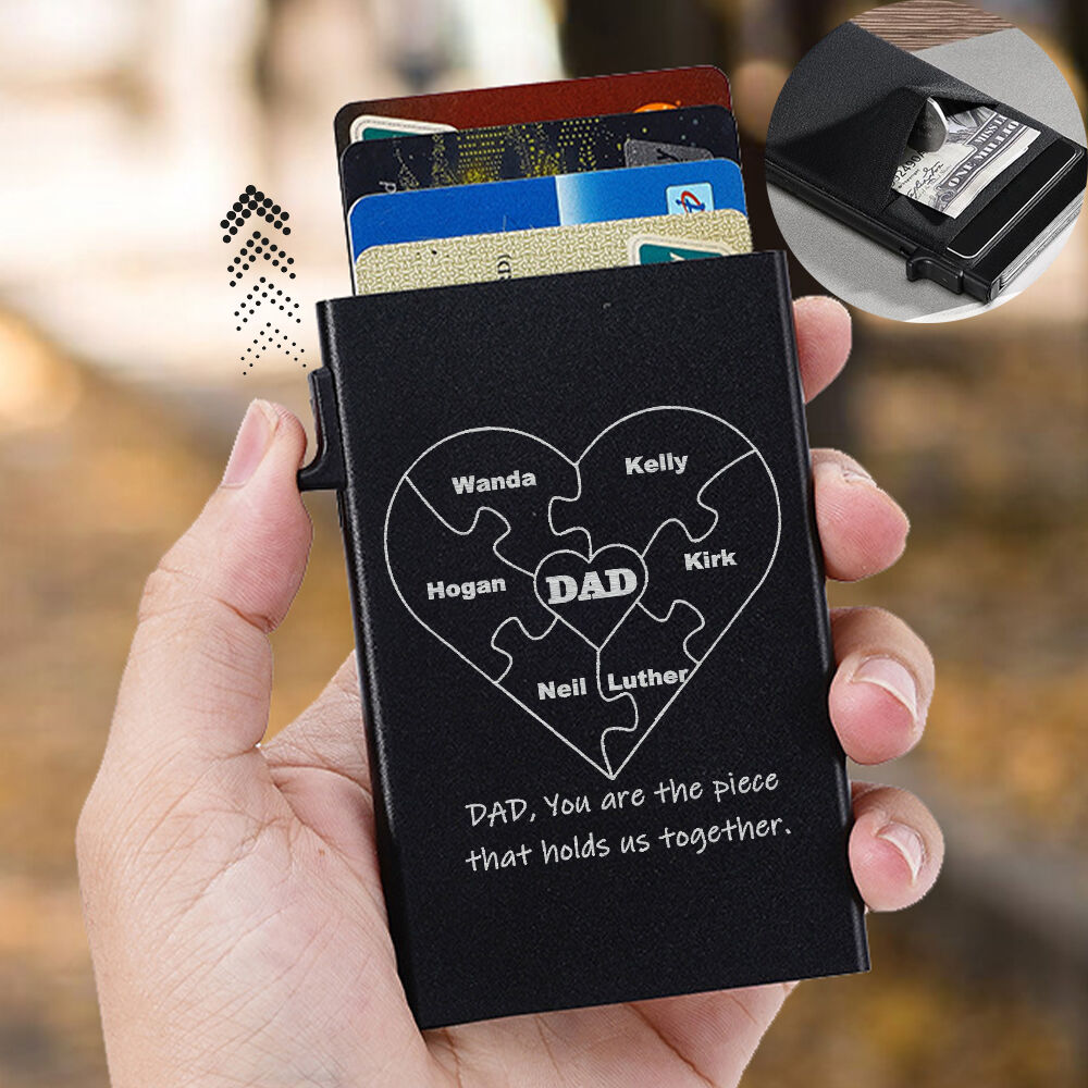 Surprise the man in your life with this eye-catching pop-up card holder, a stylish accessory that can be used not only to carry the essentials, but also to pay tribute to the incredible role he plays in your life. Perfect for any occasion, Father's Day, Valentine's Day, birthdays, this pop-up card holder makes a thoughtful gift. Not only can it be customized with a meaningful photo, date, or warm mandarin, but its durable design ensures it will last for years, while the smooth finish adds a touch of sophistication. Every time he reaches for it, he'll be reminded of the love and admiration his family has for him. Pay tribute to a true legend by gifting him this one-of-a-kind pop-up card holder!