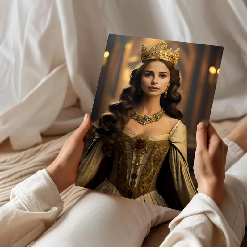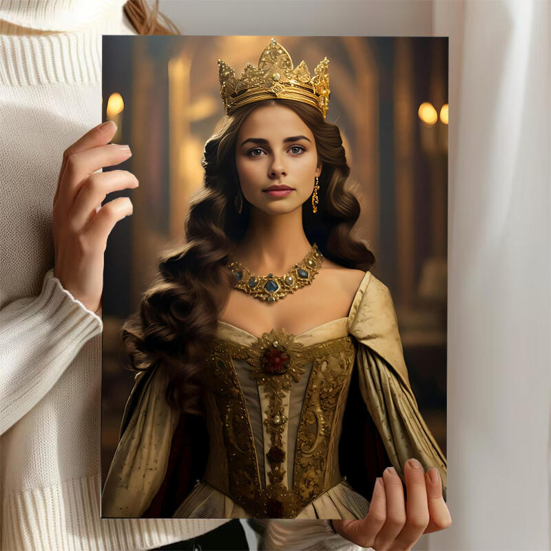Our portraits use high-quality materials and superb face-swap technology to give you lifelike artistic effects. Choose the product you like, upload a clear single front-facing photo, and we will cleverly integrate your facial features into the selected painting, and you can preview the effect after the face swap.