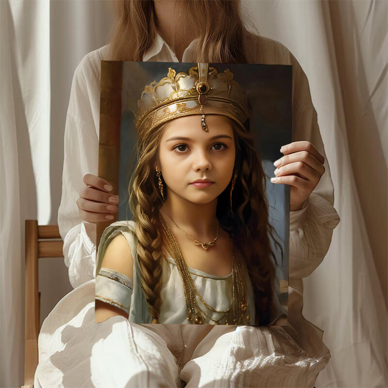 Our portraits use high-quality materials and superb face-swap technology to give you lifelike artistic effects. Choose the product you like, upload a clear single front-facing photo, and we will cleverly integrate your facial features into the selected painting, and you can preview the effect after the face swap.