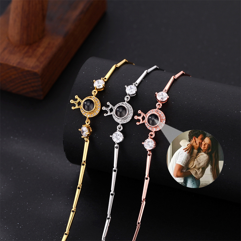 Personalized Projected Photo Bracelet With Crown Warm Birthday Gift For Her