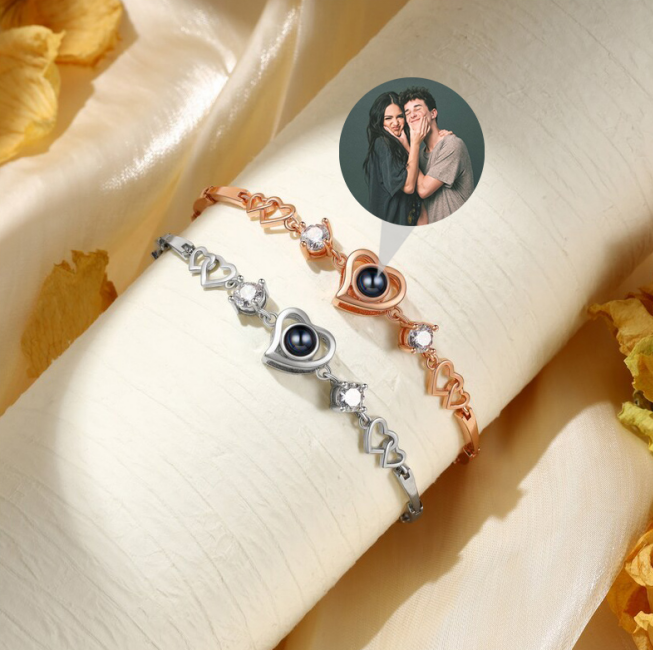 Personalized Projected Picture Bracelet With Heart Shaped Pendant Romantic Christmas Gift For Wife