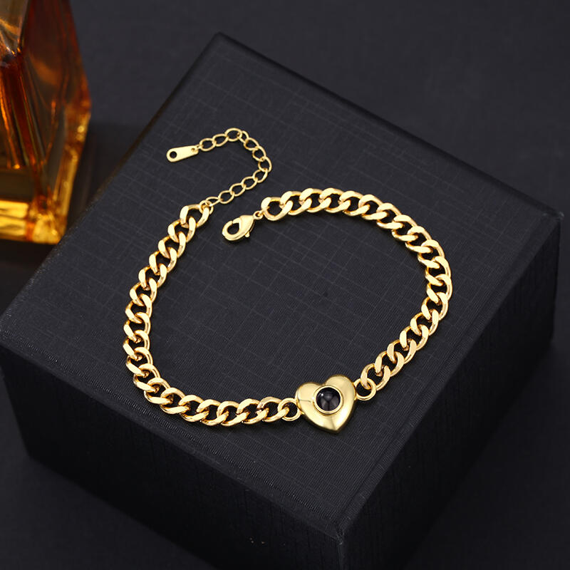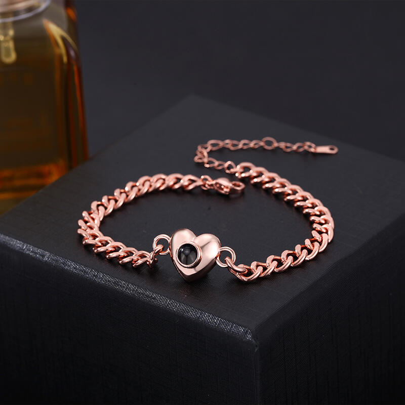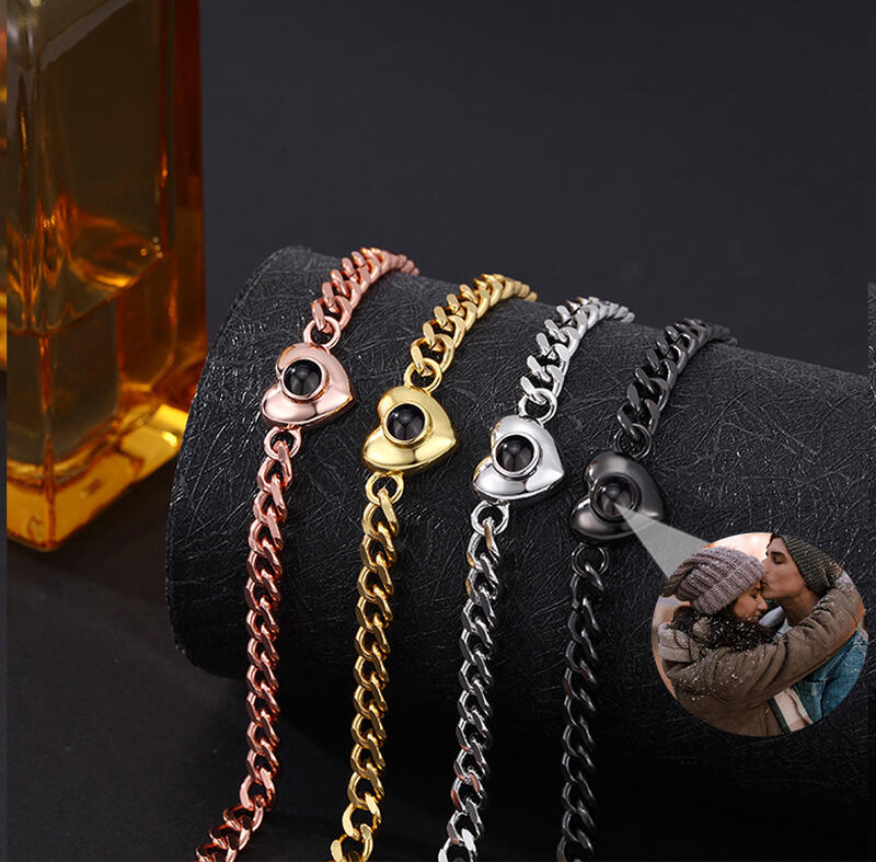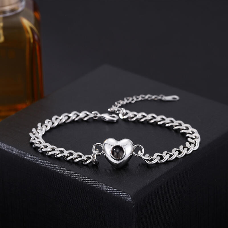 Personalized Projected Picture Bracelet With Heart-Shaped Pendant Warm Birthday Gift For Him