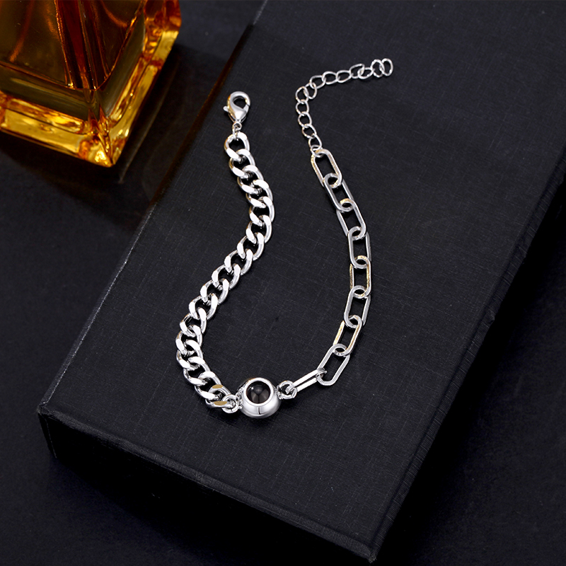 Personalized Projected Picture Bracelet With Round Pendant Handsome Christmas Gift For Husband