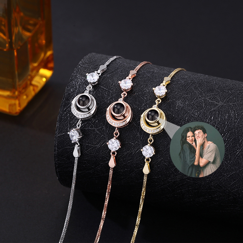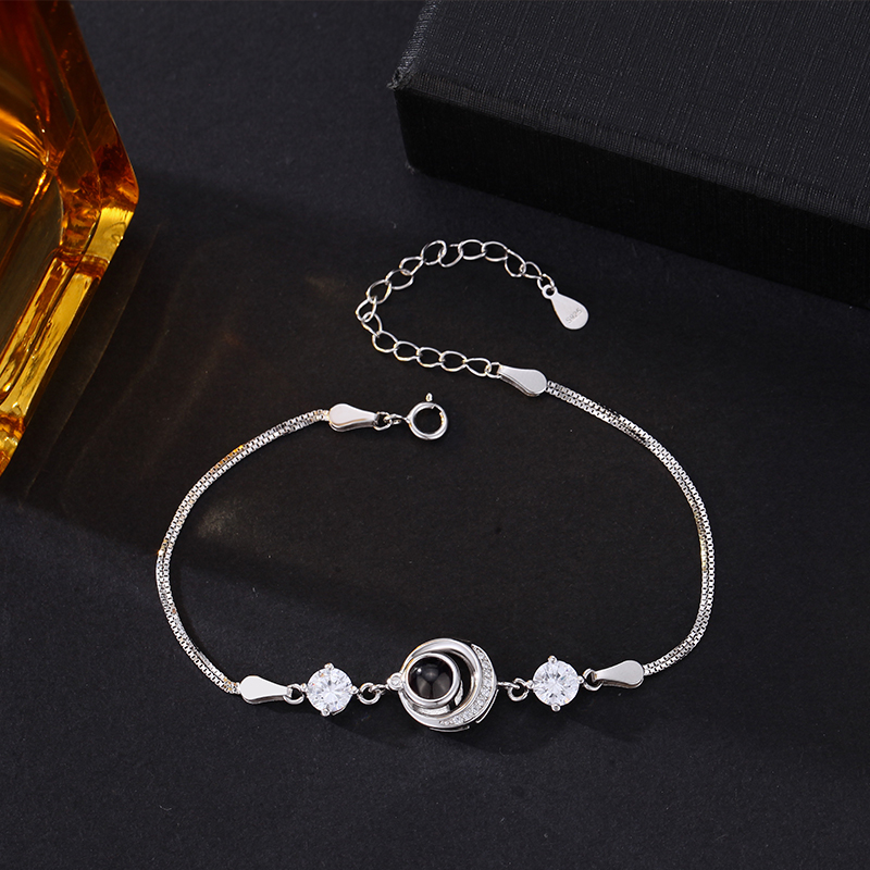 Personalized Projected Picture Bracelet With Round Pendant Warm Anniversary Gift