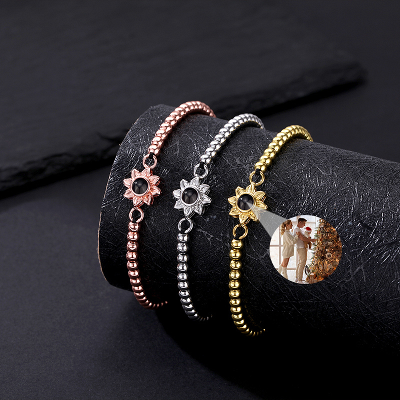 Personalized Projected Picture Bracelet With Sunflower Pendant Exquisite Valentine's Day Gift