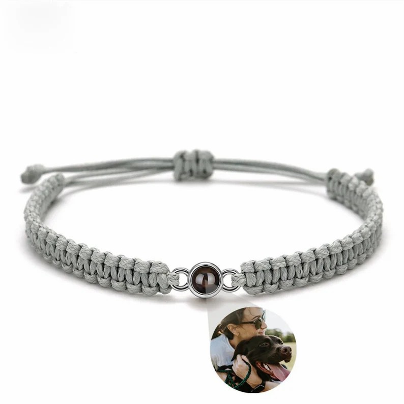Personalized Projection Photo Bracelet Gray Braided Rope Simple Gift For Him