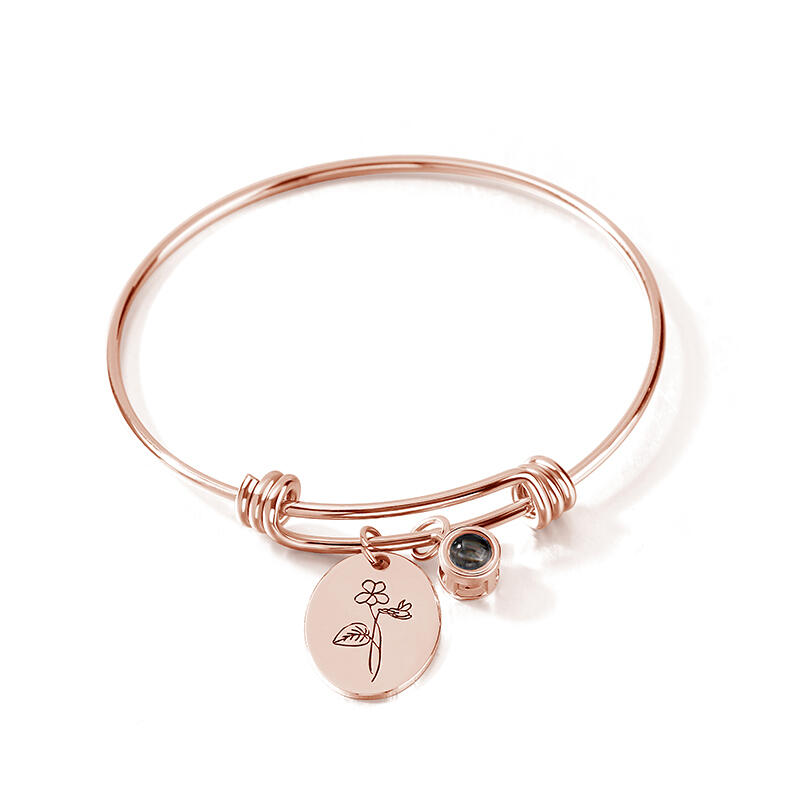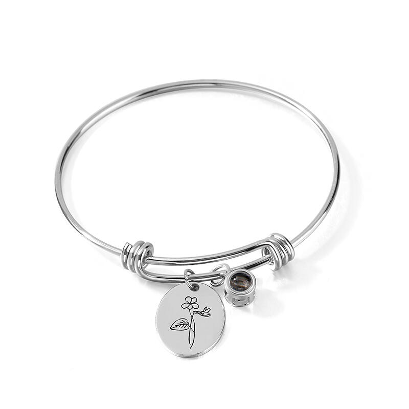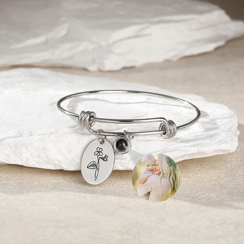 Personalized Projection Photo Bracelet with Birthday Flowers Mother's Day Gift