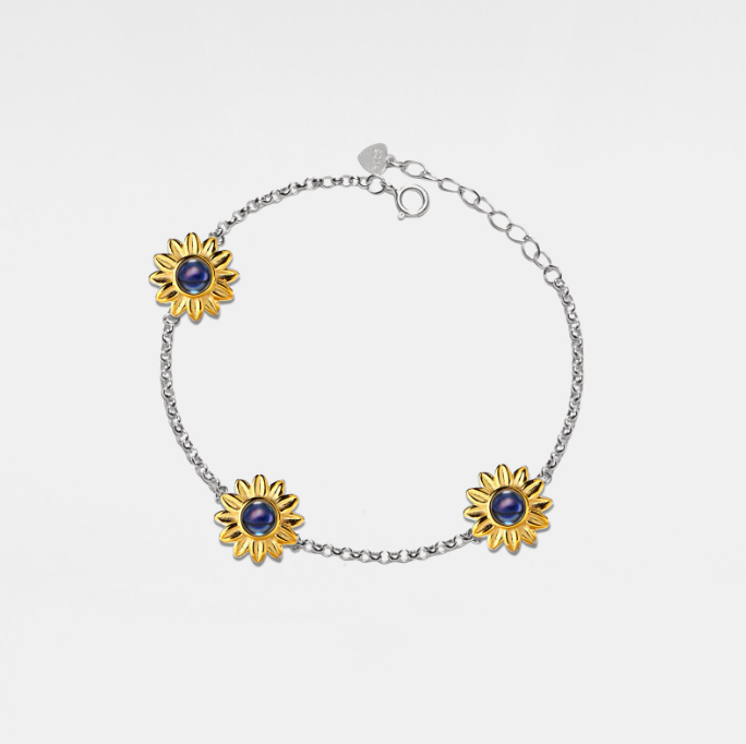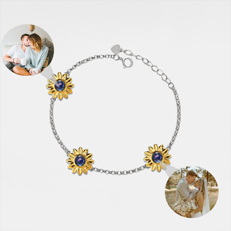 Personalized Projection Picture Bracelet With Sunflower Pendant Optional Photo Quantity Christmas Gift