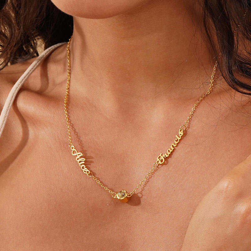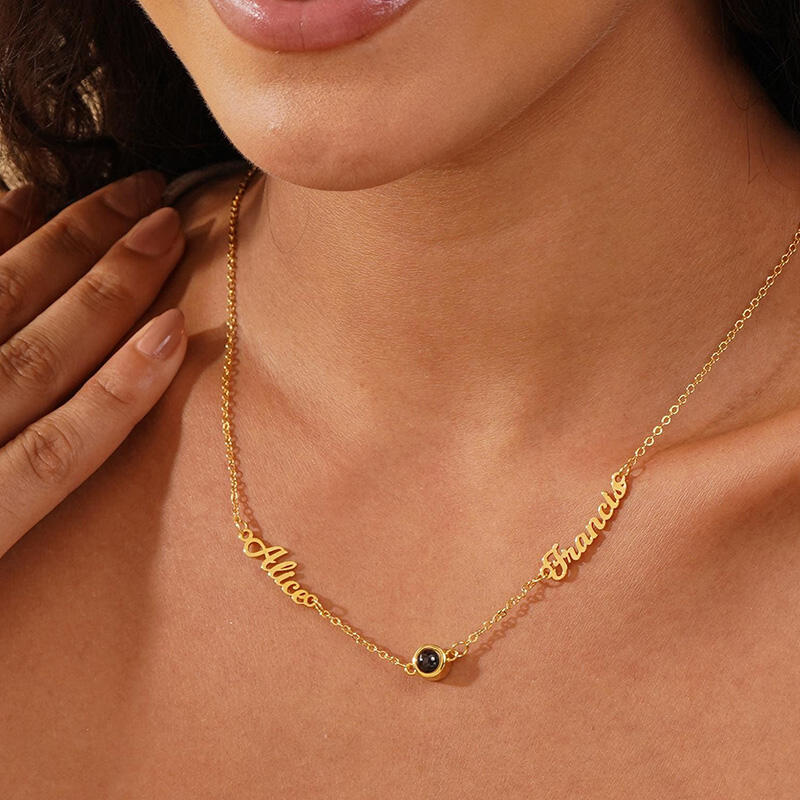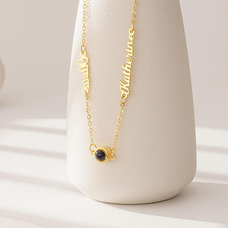 Personalized Projection Picture Necklace Customized 2 Name Sweet Gift For Couples