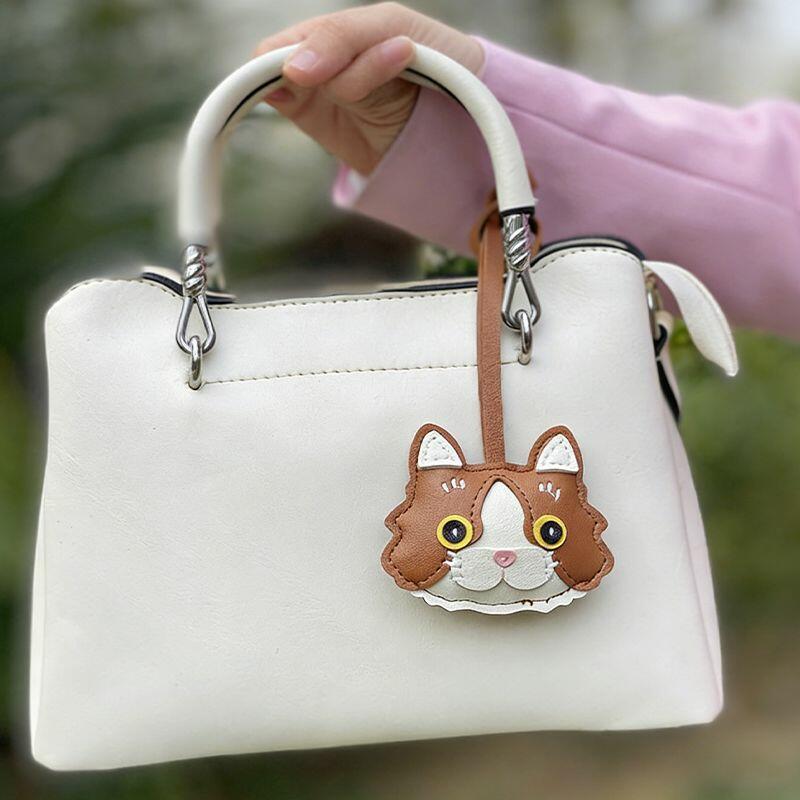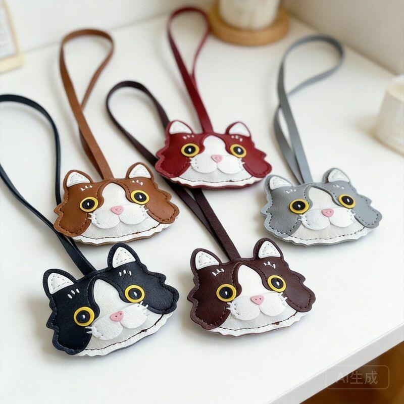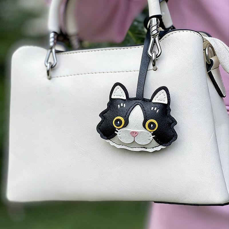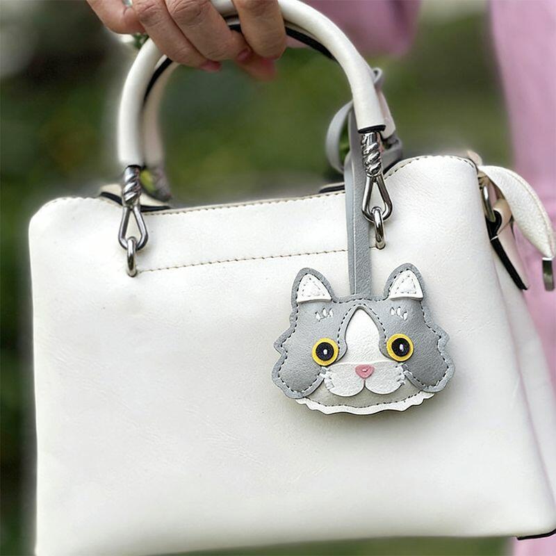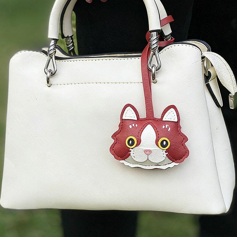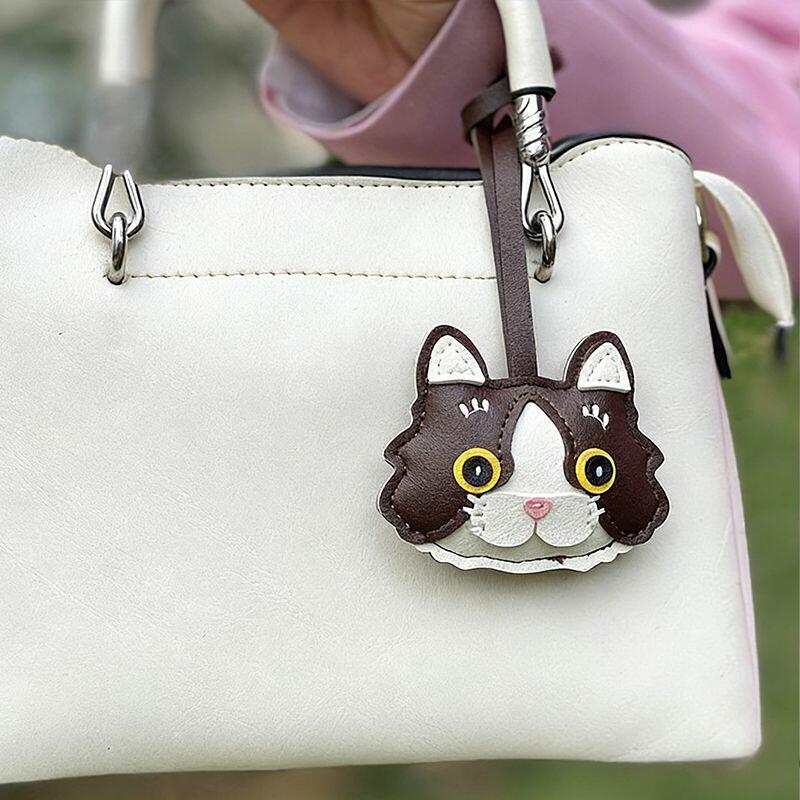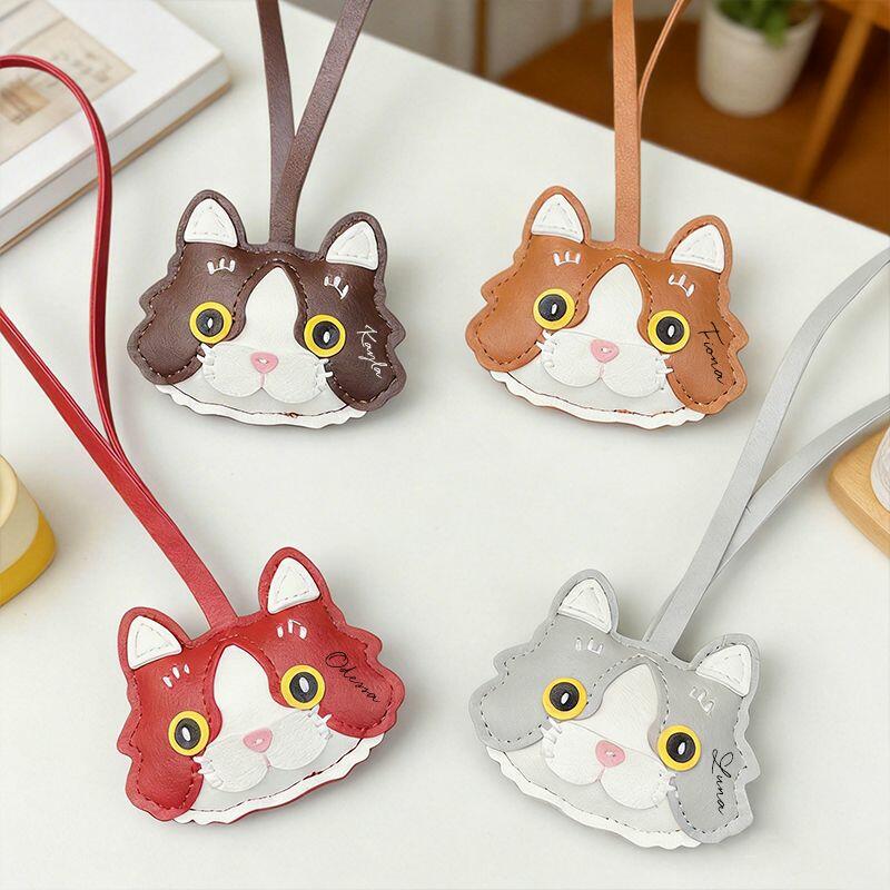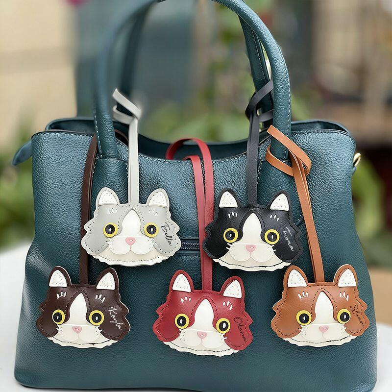 Personalized PU Leather Bag Charm Ornament Cat Head Design Cute Gift for Pet Lovers
