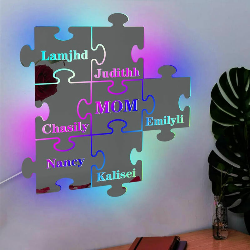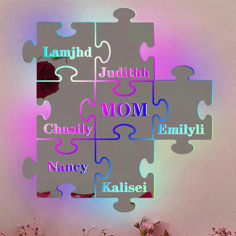 Personalized Puzzle Mirror Light With Name Group Number Warm Gift For Mother's Day