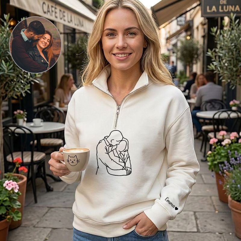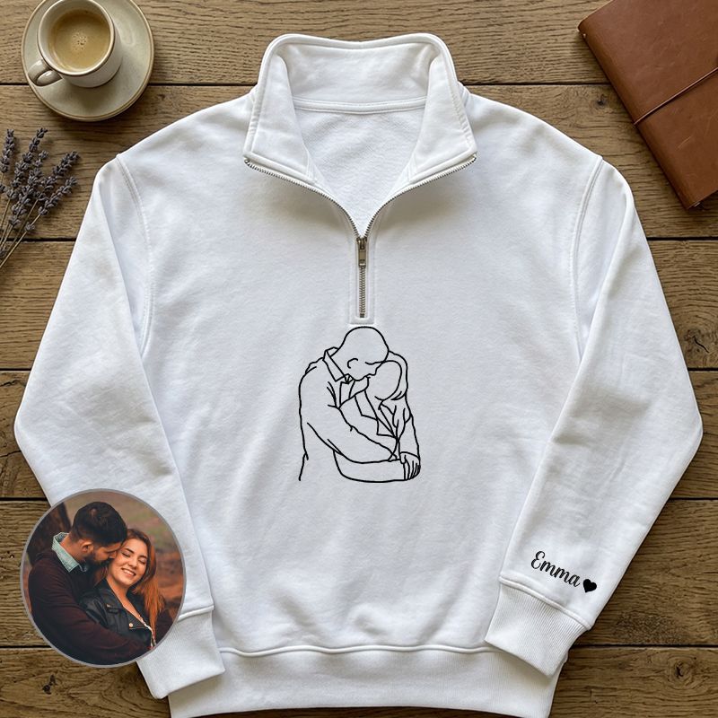 Personalized Quarter Zip Sweatshirt Embroidered Custom Couple Photo Line Design Attractive Gift for Lovers