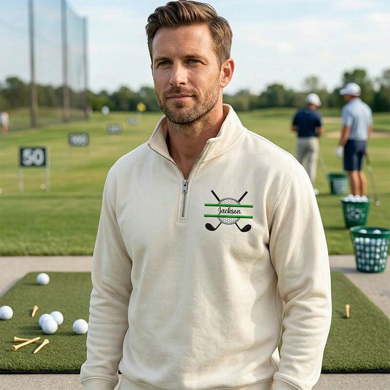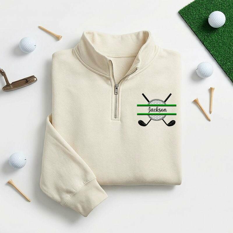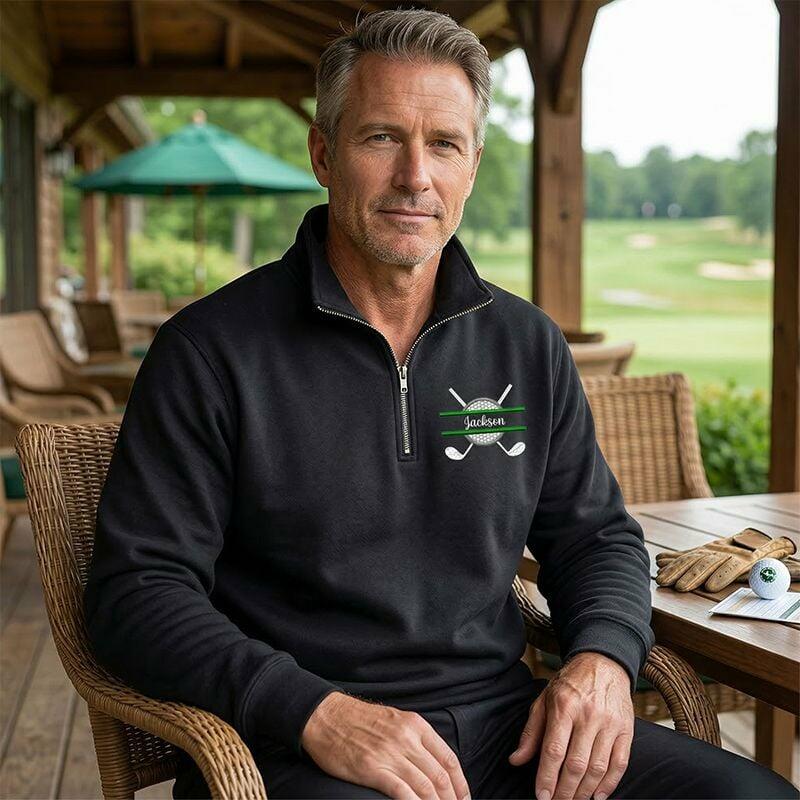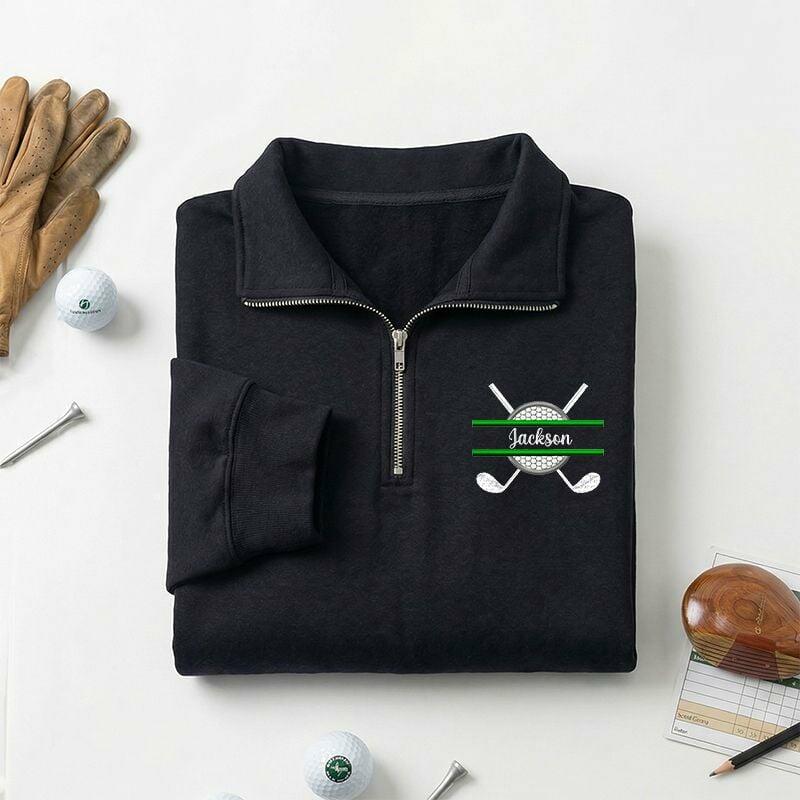 Personalized Quarter Zip Sweatshirt Embroidered Custom Golf Club and Name Design Unique Gift for Golf Lovers