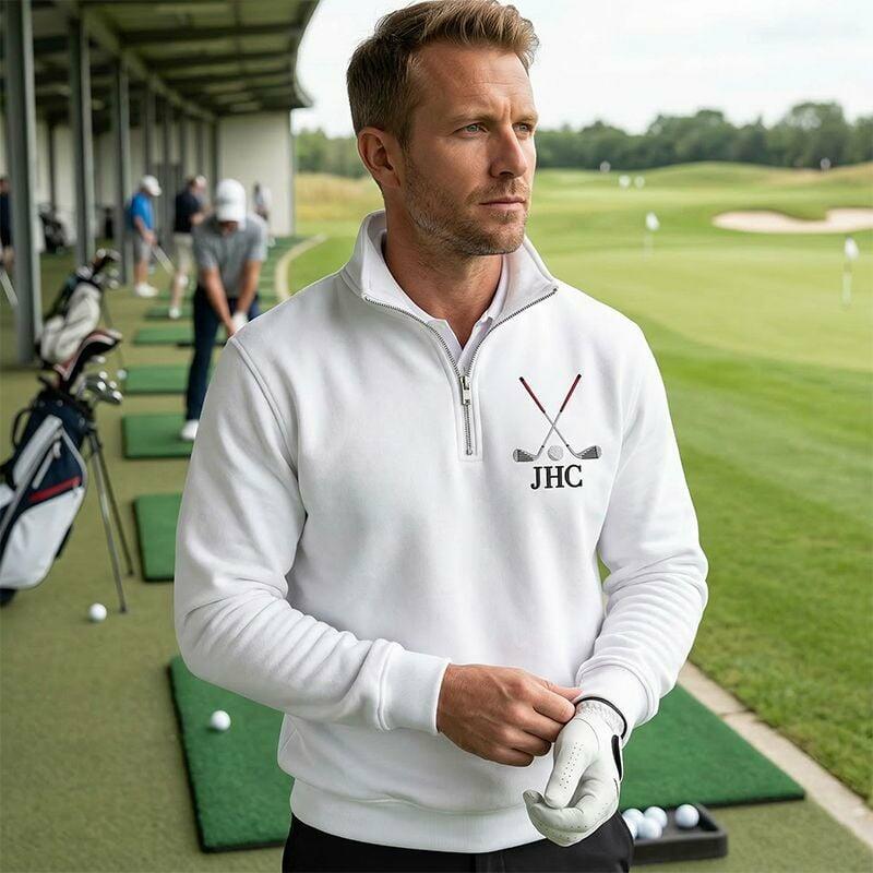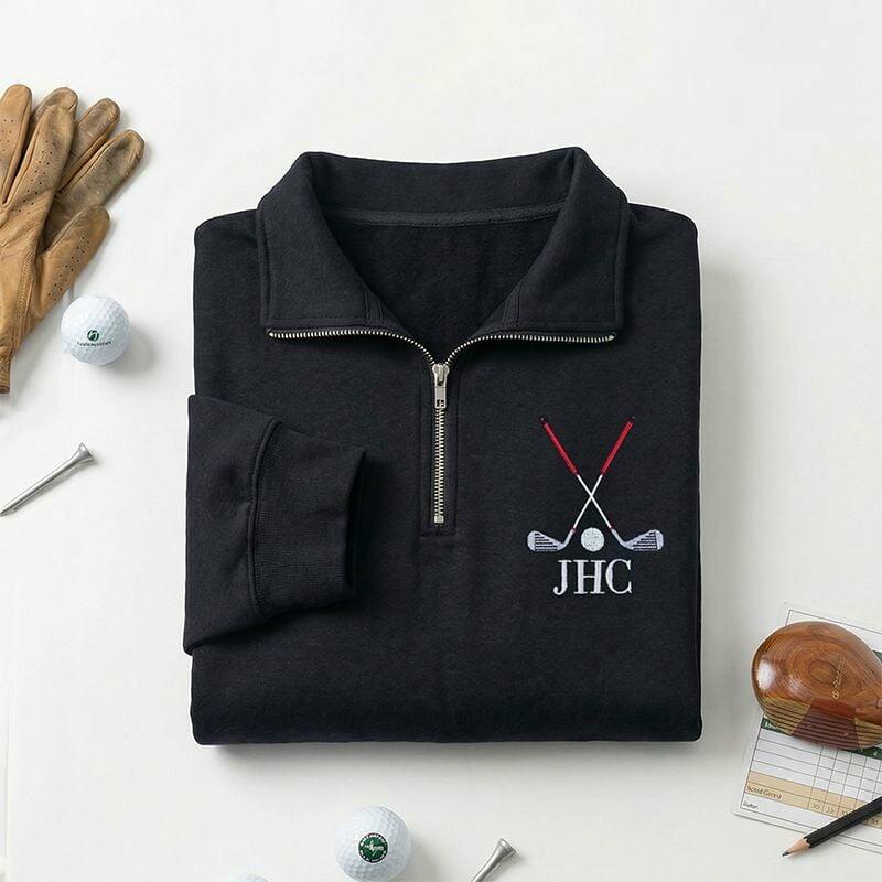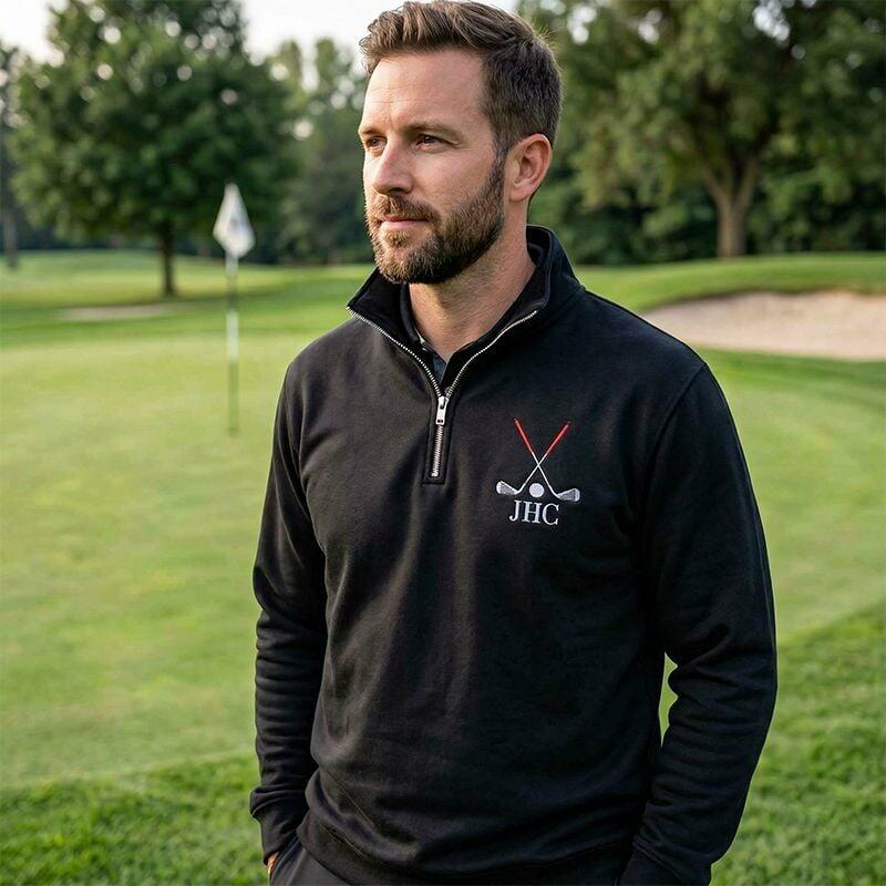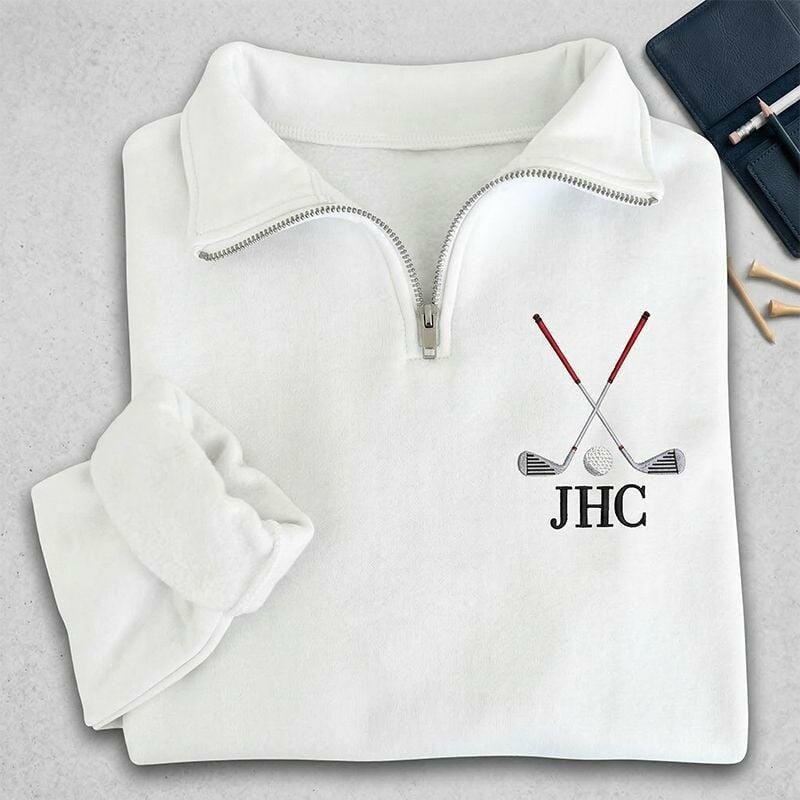 Personalized Quarter Zip Sweatshirt Embroidered Custom Letters Golf Club Design Perfect Gift for Golf Lovers