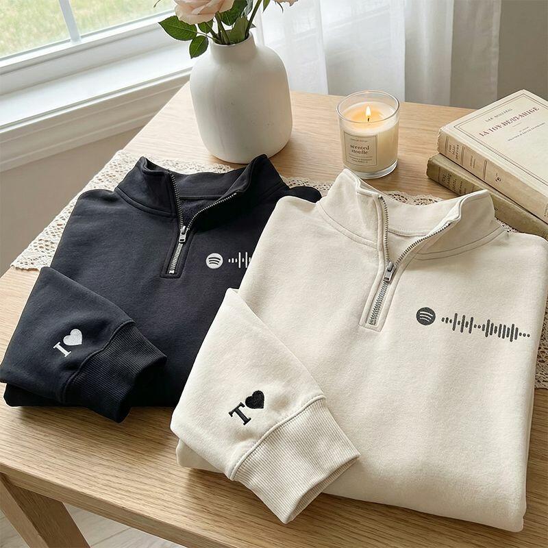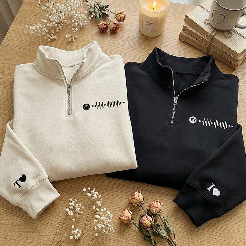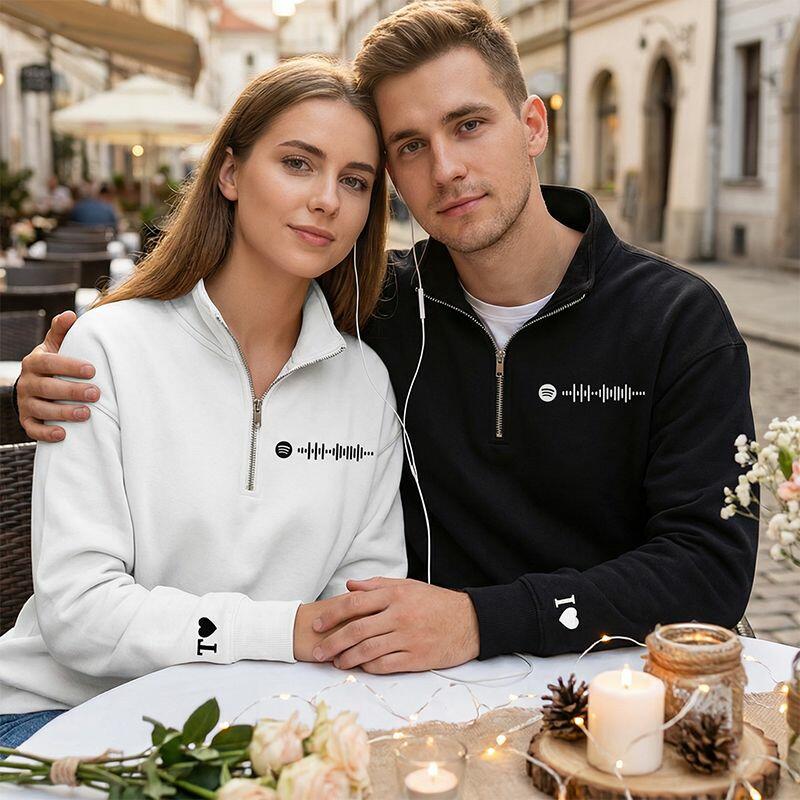 Personalized Quarter Zip Sweatshirt Embroidered Custom Music Code Creative Valentine's Day Gift for Couples
