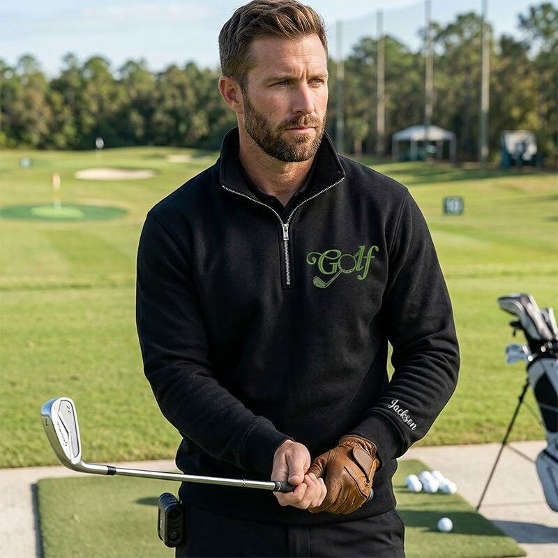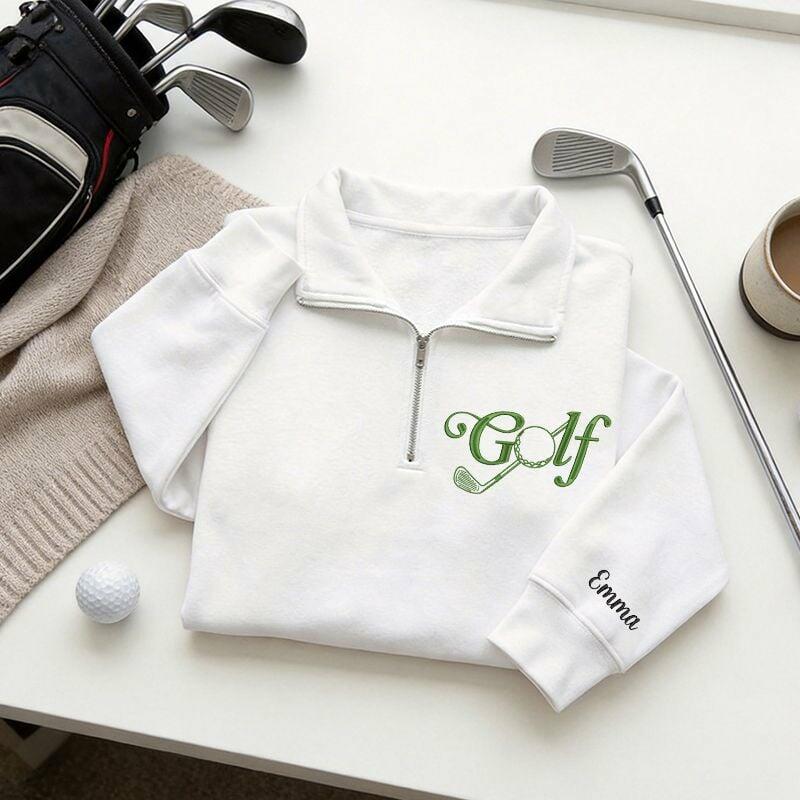 Personalized Quarter Zip Sweatshirt Embroidered Custom Name and Golf Sign Design Gift for Golf Lover Friends