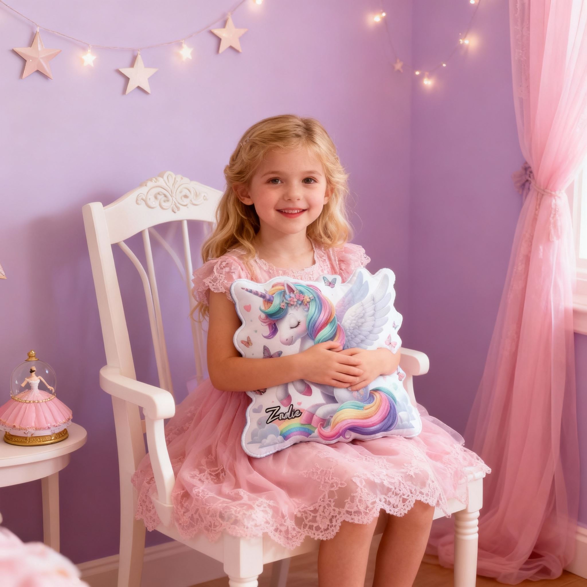 Personalized Rainbow Unicorn Pillow with Wings and Butterflies Custom Name Gift for Girl