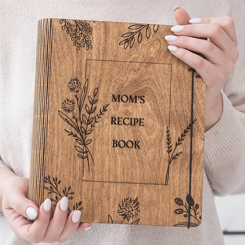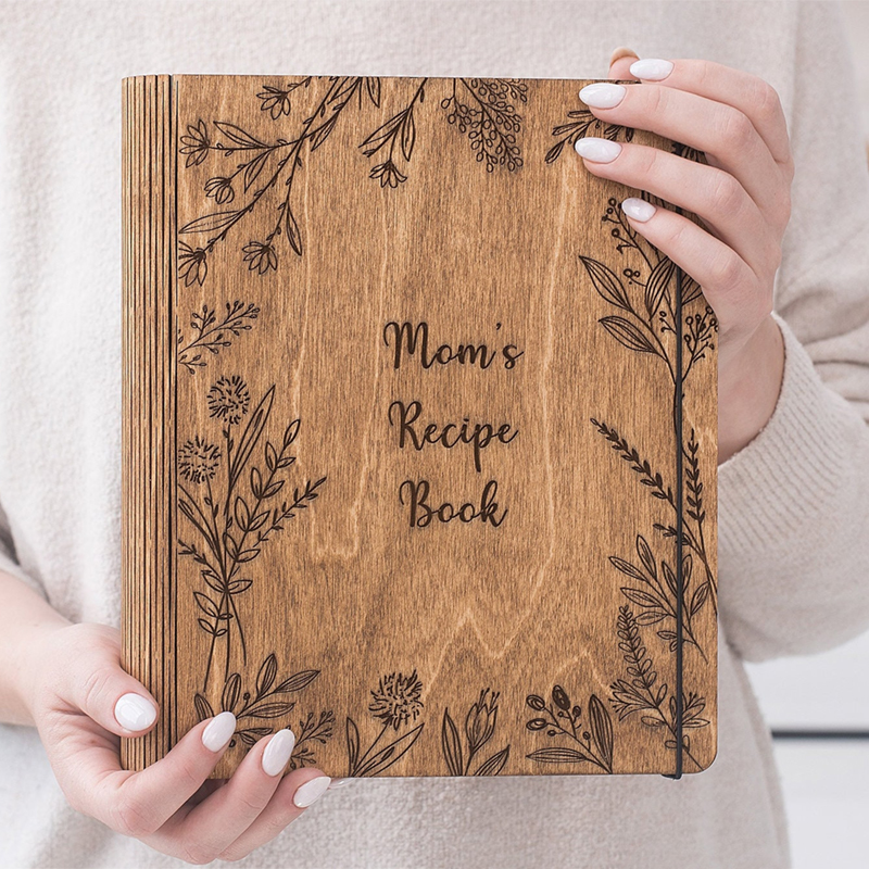 Personalized Recipe Book Custom Beautiful Artistic Flower Cover Design Gift for Dear Mom