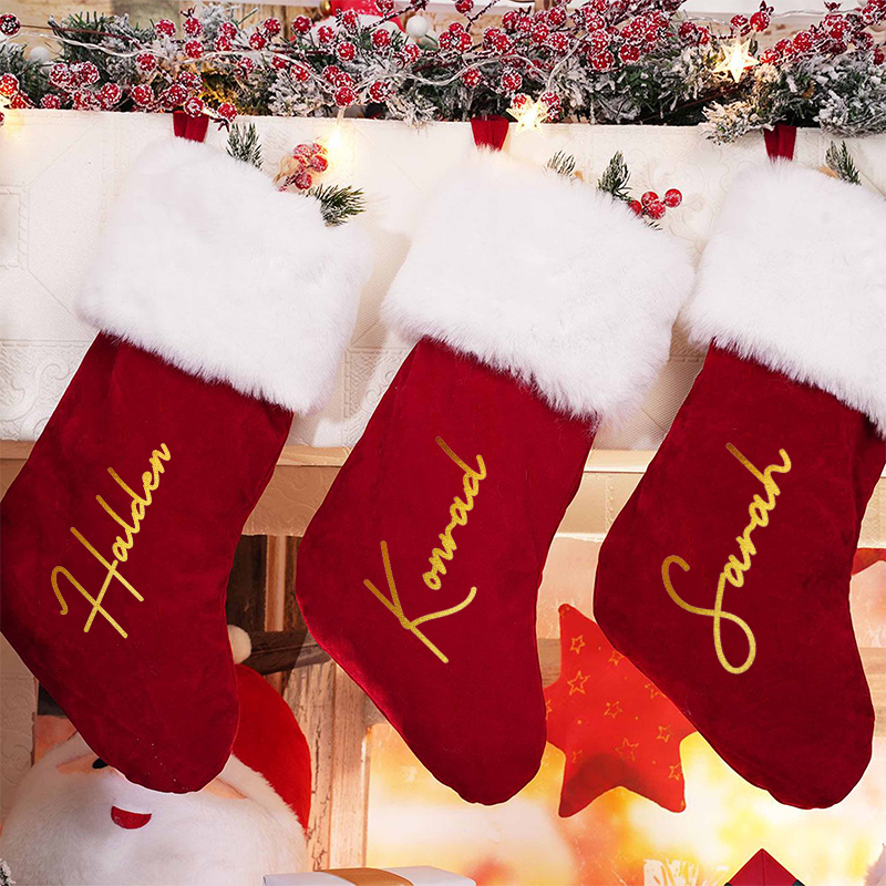 Personlig rød julestrømpe med tilpasset navn Varm gave til jul