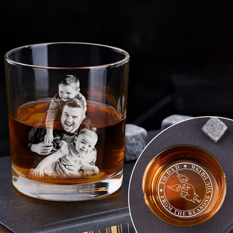 Personalized Whiskey Glass Custom Photo To Dad From The Reasons You Drink for Father's Day