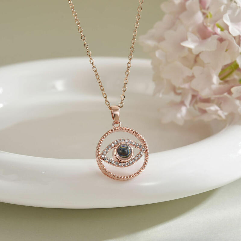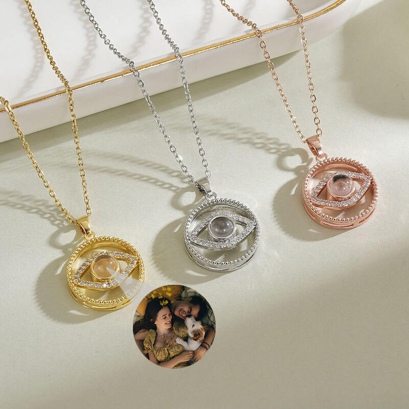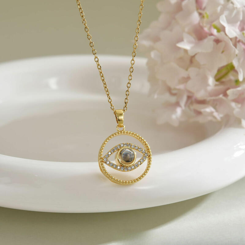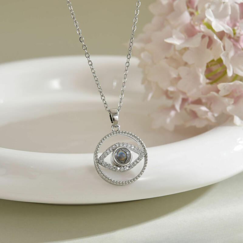 Personalized Round Evil Eye Projection Picture Necklace Beautiful Gift for Her