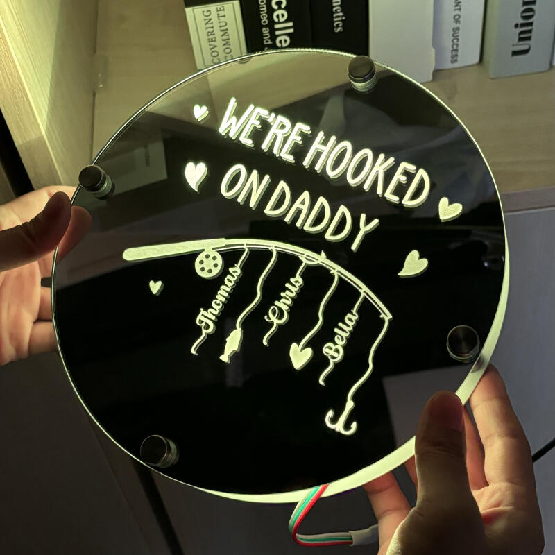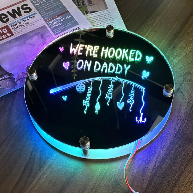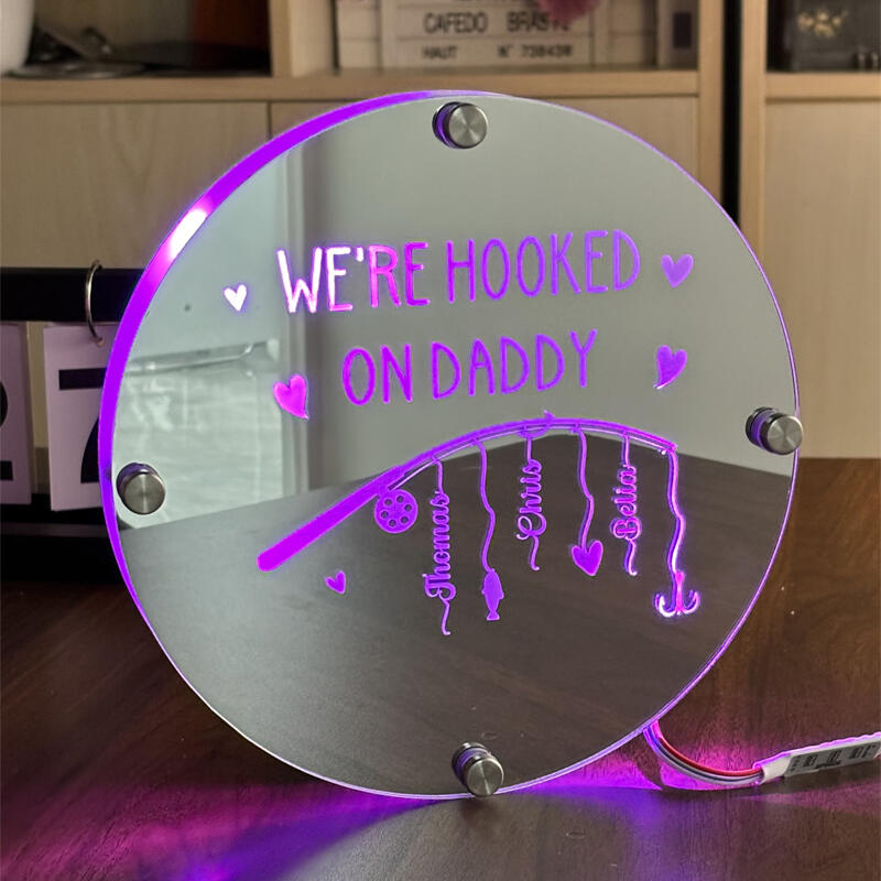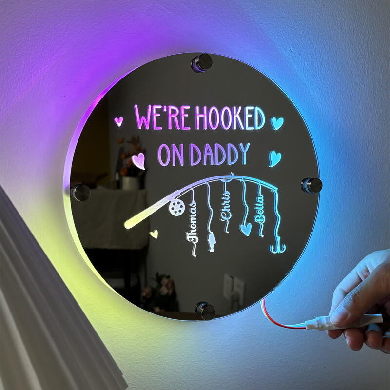 Personalized Round Mirror Lamp With Fishing Rod Cool Gift For Dad