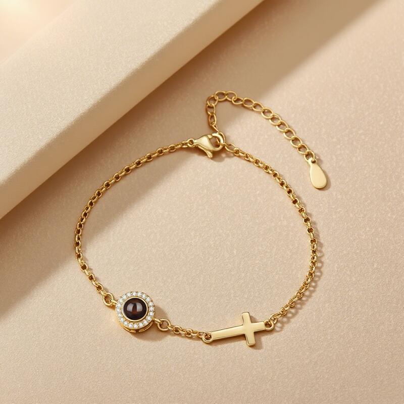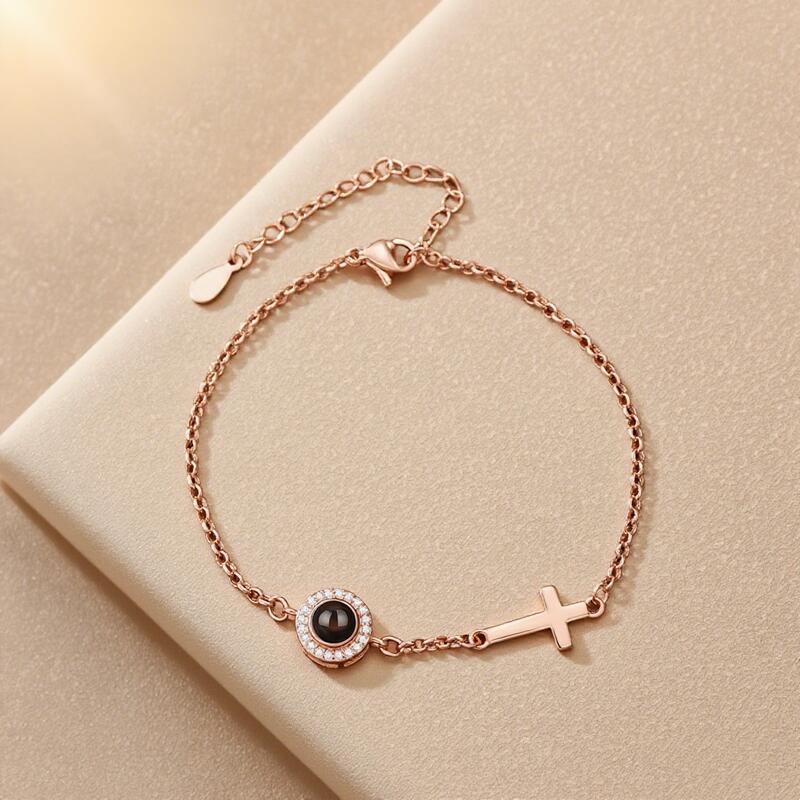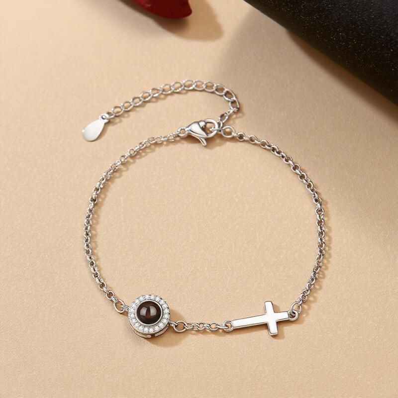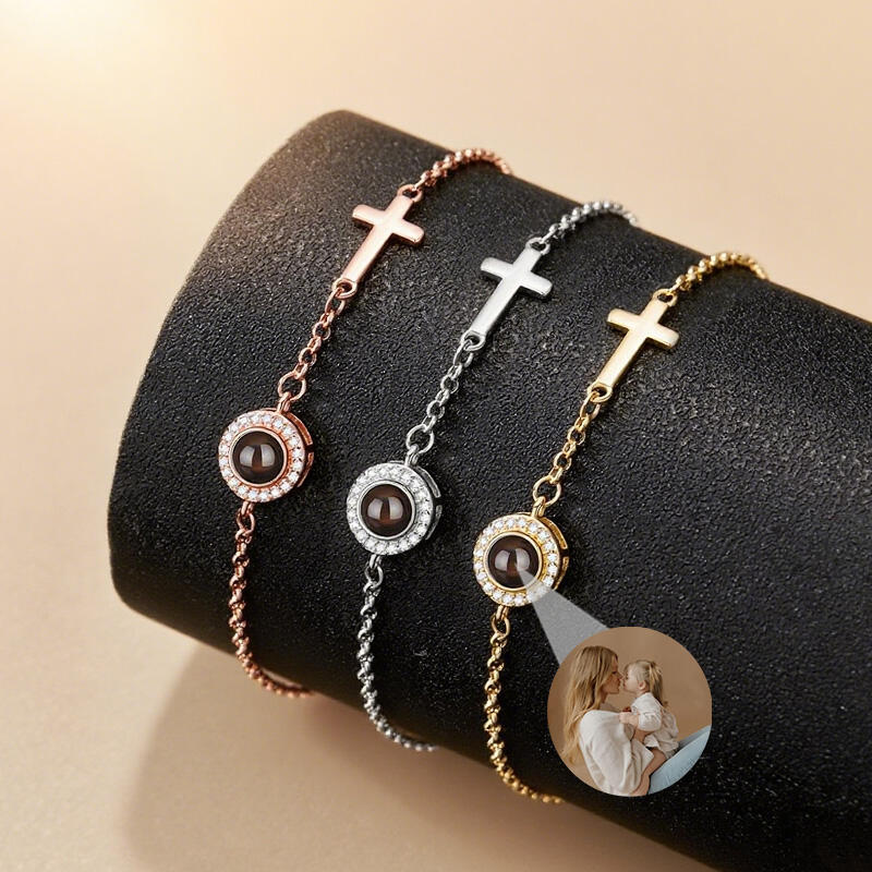 Personalized Round Pendant Projection Picture Bracelet with Cross Gift for Mother