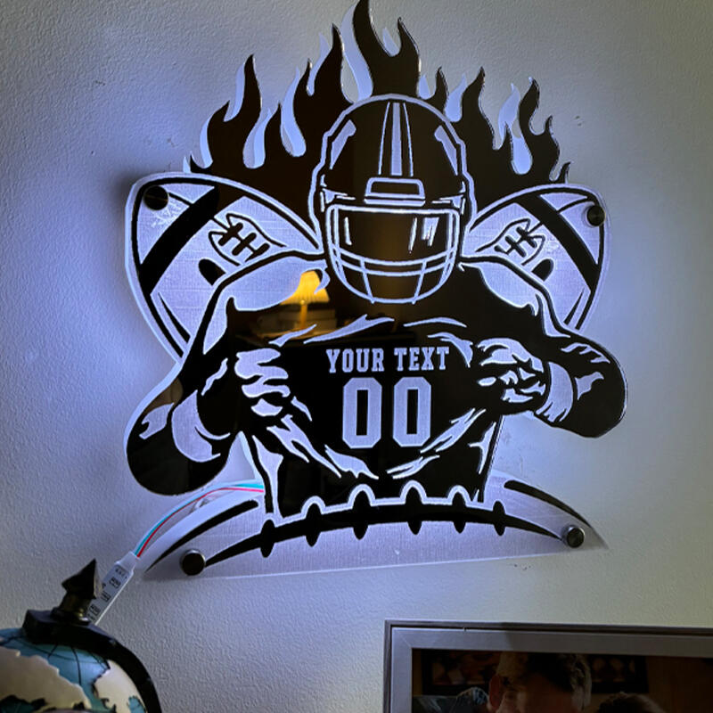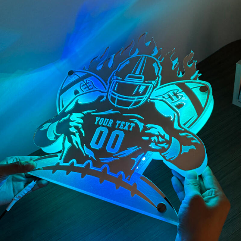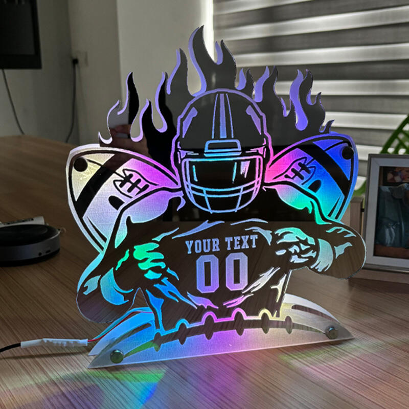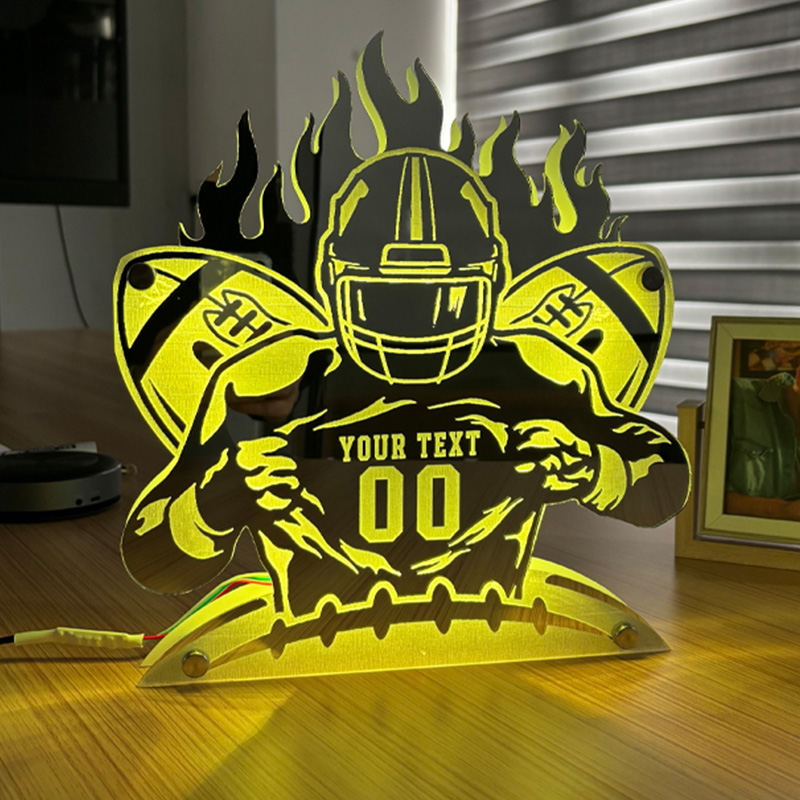 Personalized Rugby Player Mirror Lamp With Customized Numbers And Names For Rugby Lovers