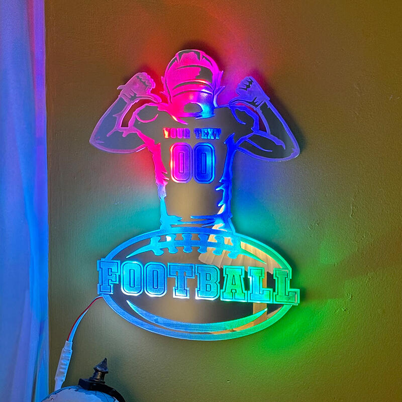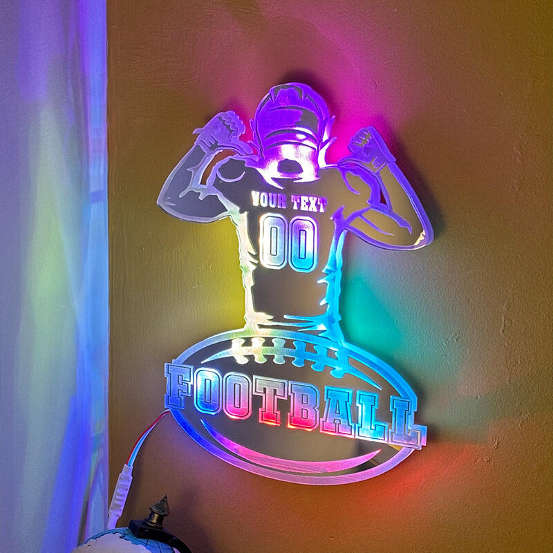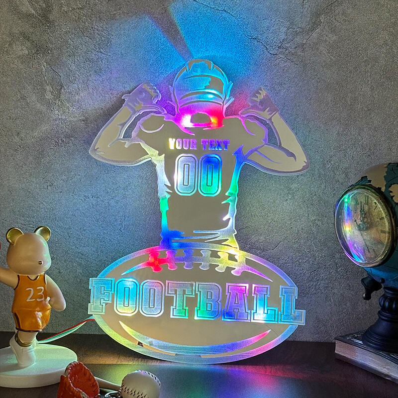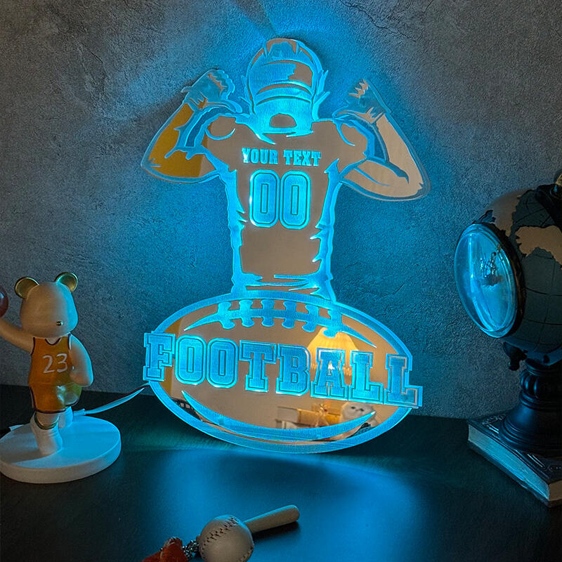 Personalized Rugby Player Mirror Light With Custom Numbers And Names For Sports Lovers