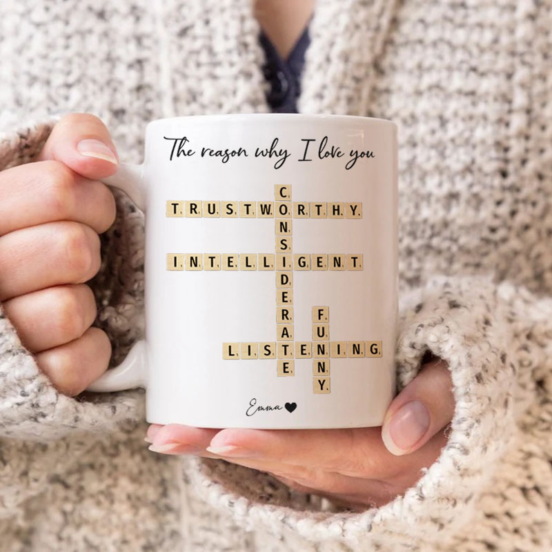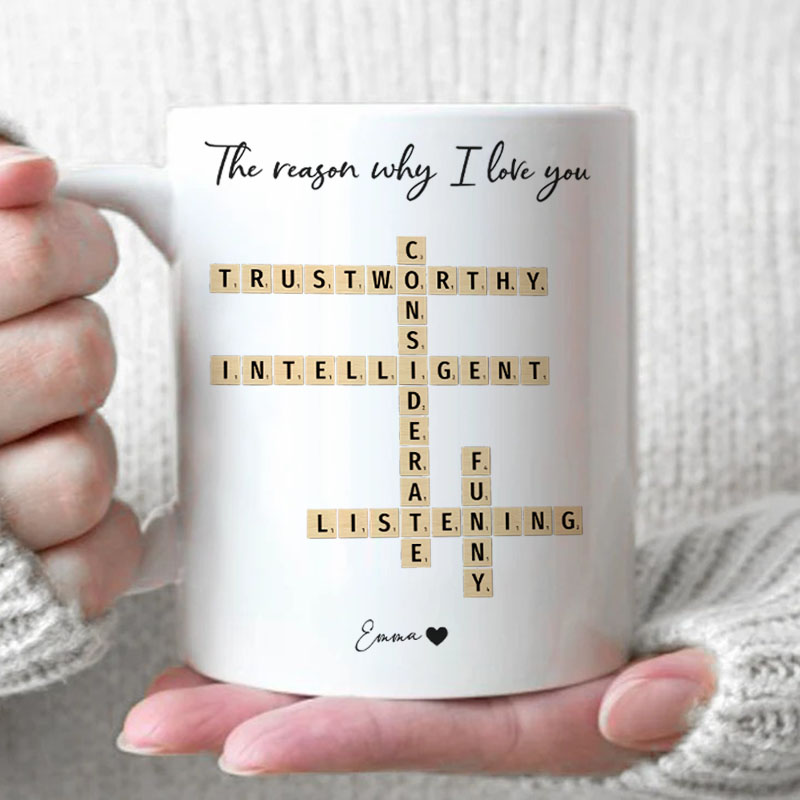 Personalized Scrabble Mug Custom Love Words Funny Gift for Family