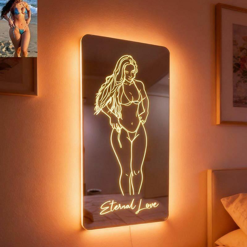 Personalized Sexy Photo Mirror Lamp Fun Valentine's Day Gift for Your Boyfriend