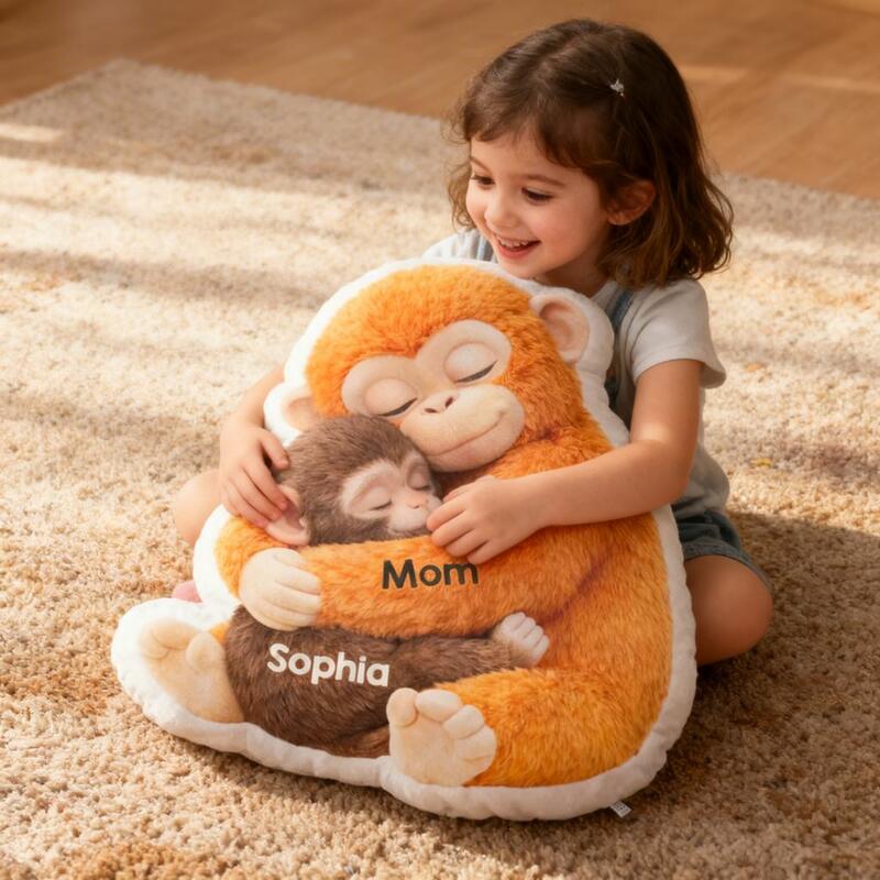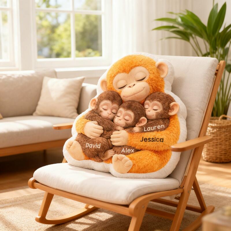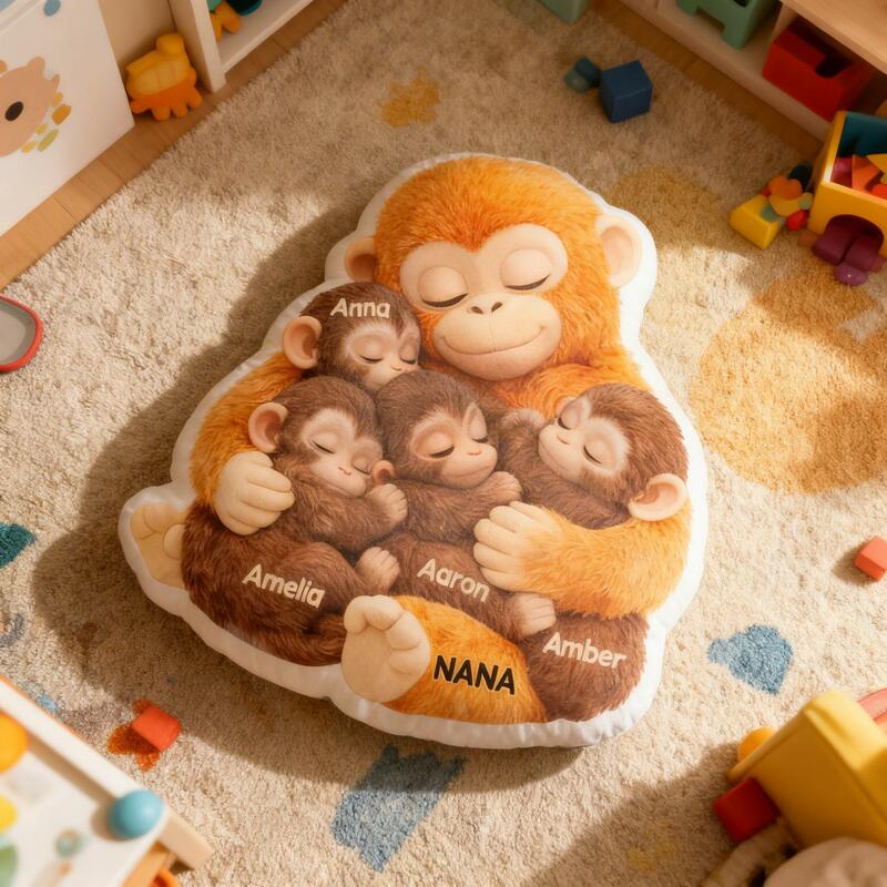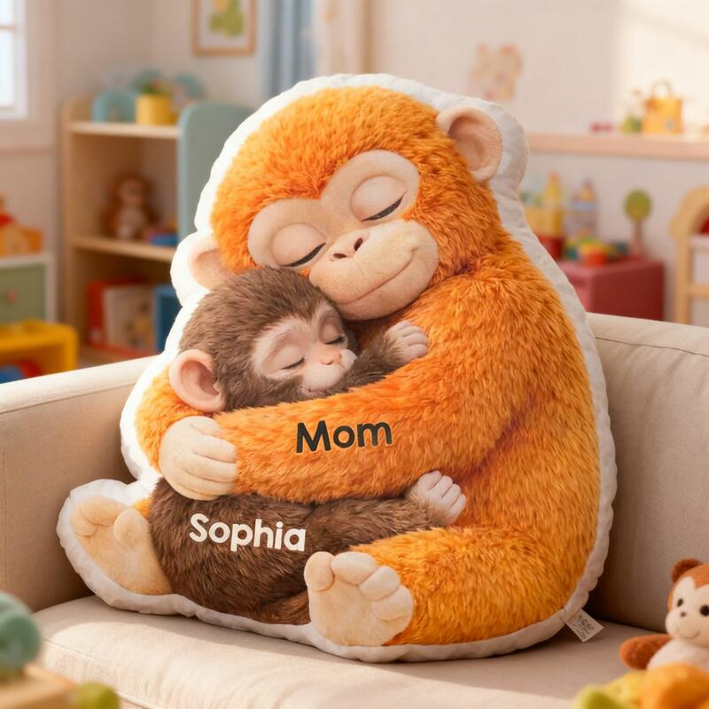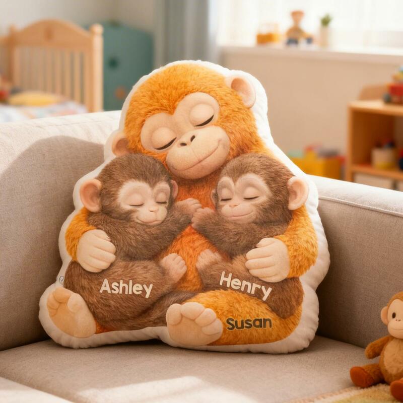 Personalized Shaped Pillow Punch Monkey Theme Mother Monkey & Children Mother's Day Gift for Mom