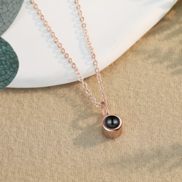 This is a mysterious necklace, Personalized for the moment you love most on a projection necklace! Engraved love never fades, and treasured memory will always be with you. Carry your Little cute photo hidden in the pendant, You can see the photo inside the pendant, or you can use it to illuminate the light and project your photo on the wall. The best dreamy gift for yourself and family, and friends.