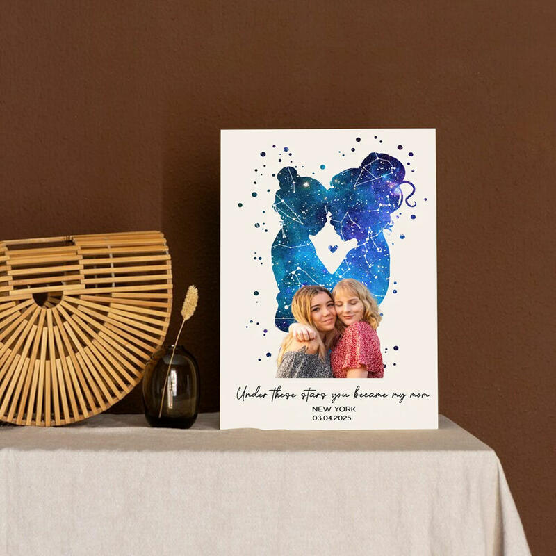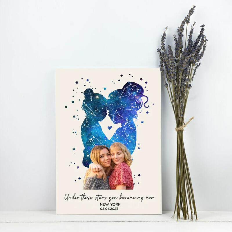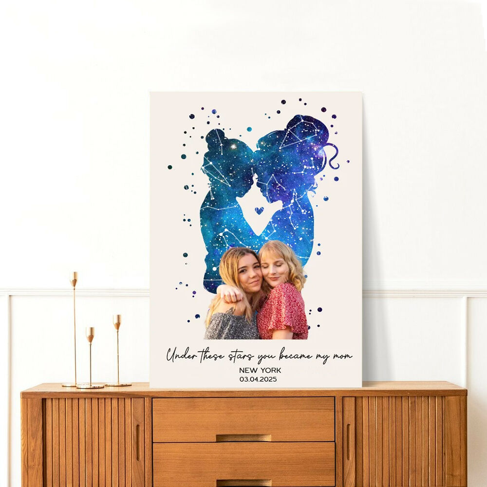 Personalized Star Map Canvas Wall Art with Custom Picture Wonderful Present for Mother