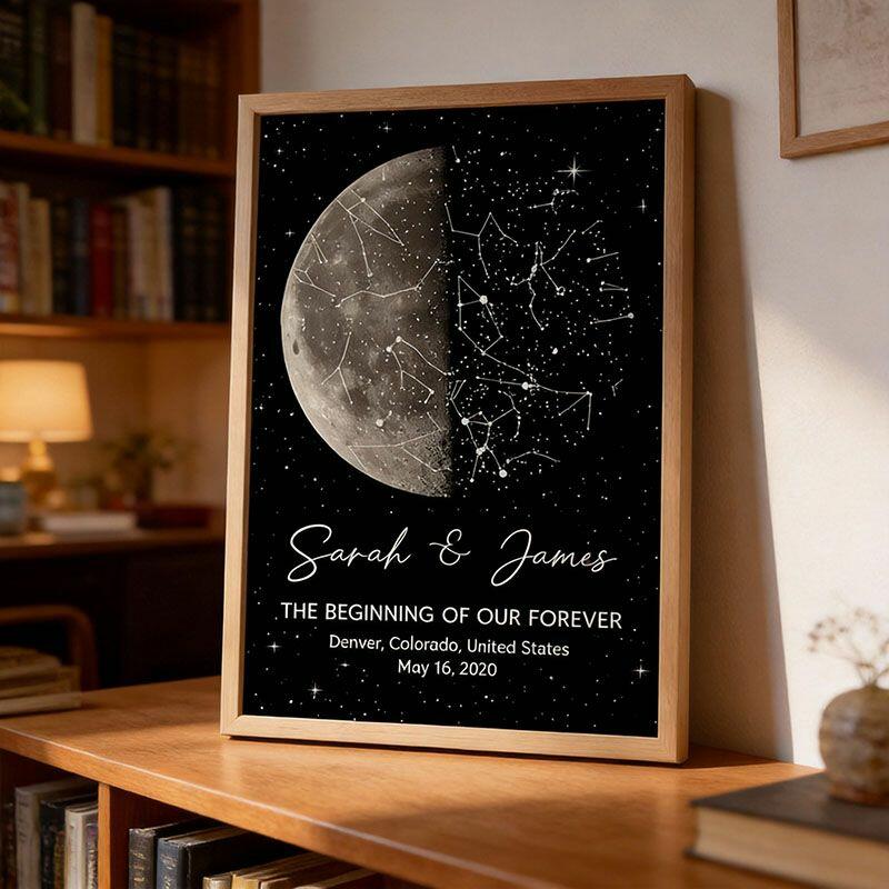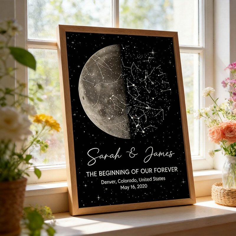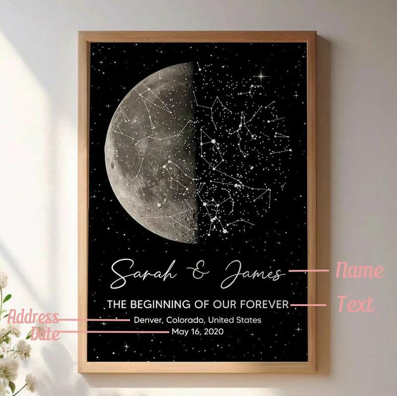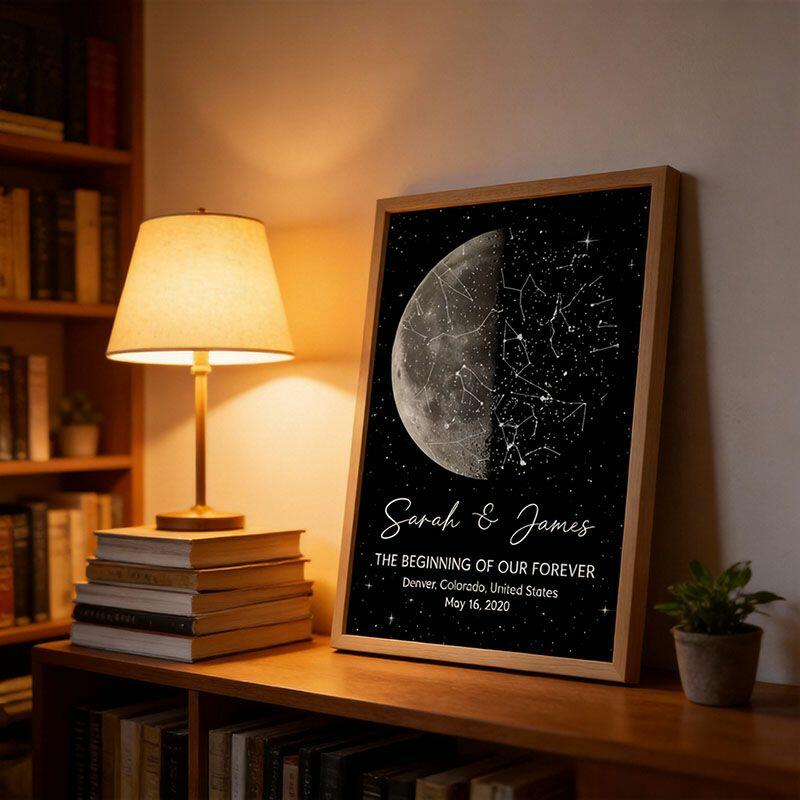 Personalized Star Map Frame with Moon Phase Design Delicate Gift for Your Loved One