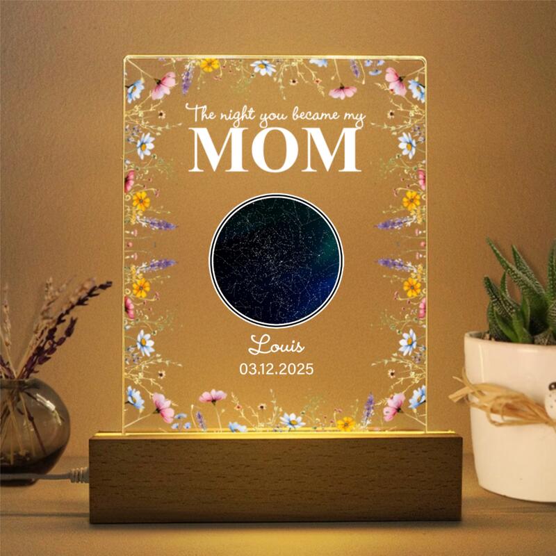 Personalized Star Map Night Light with Colorful Flowers Pattern Best Gift for Mom