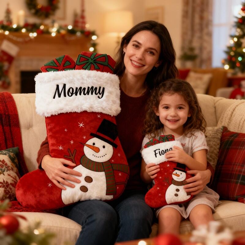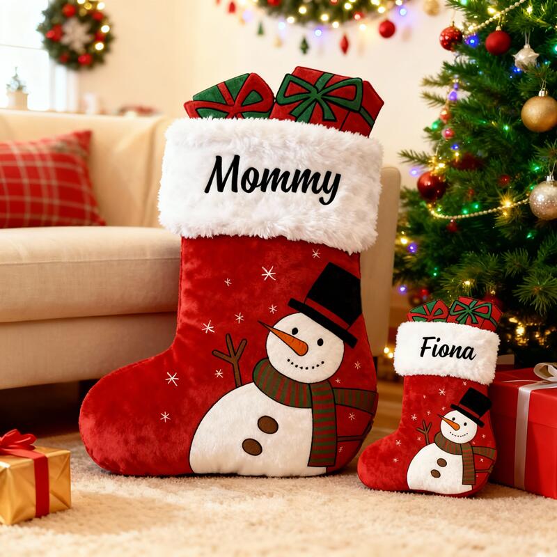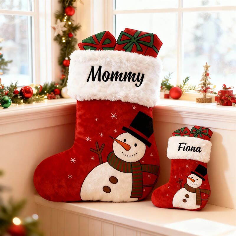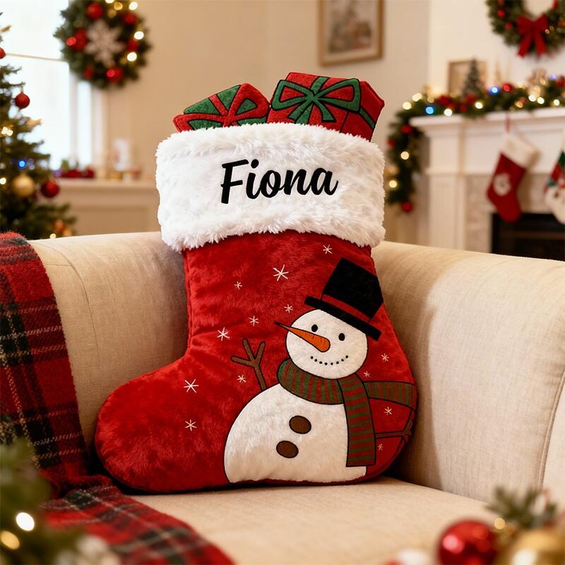 Personalized Stocking-Shaped Pillows Cute Snowman Design Perfect Christmas Gift for Family