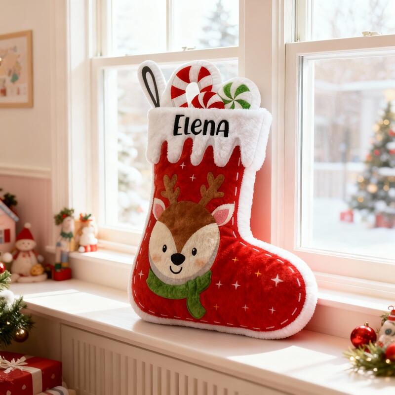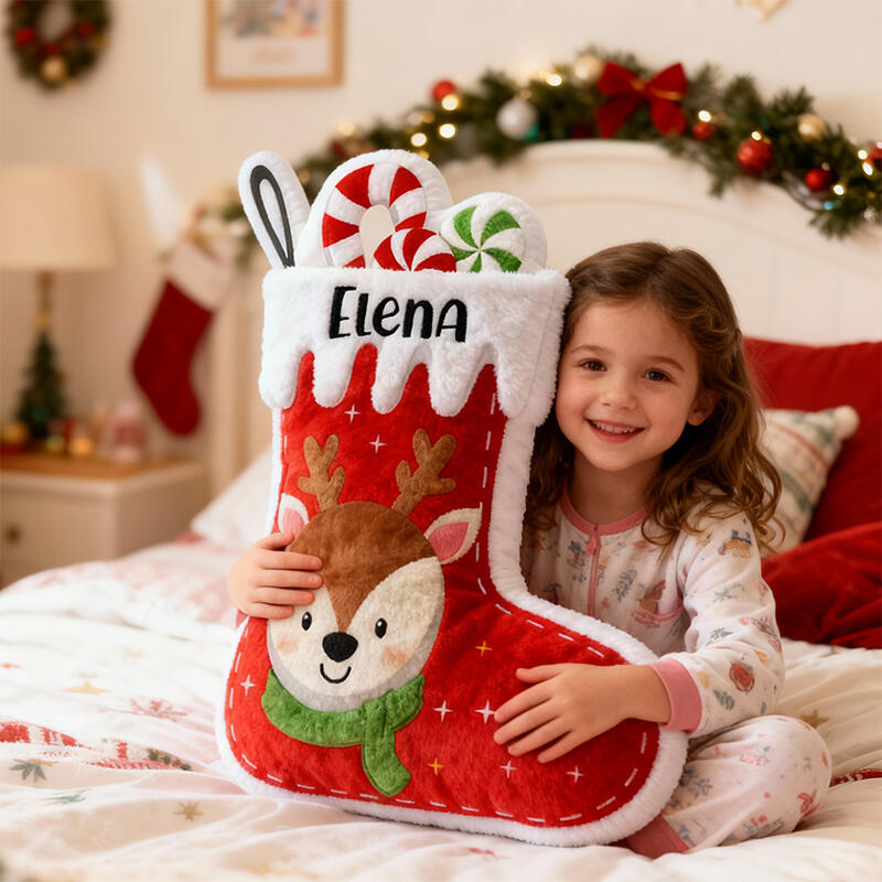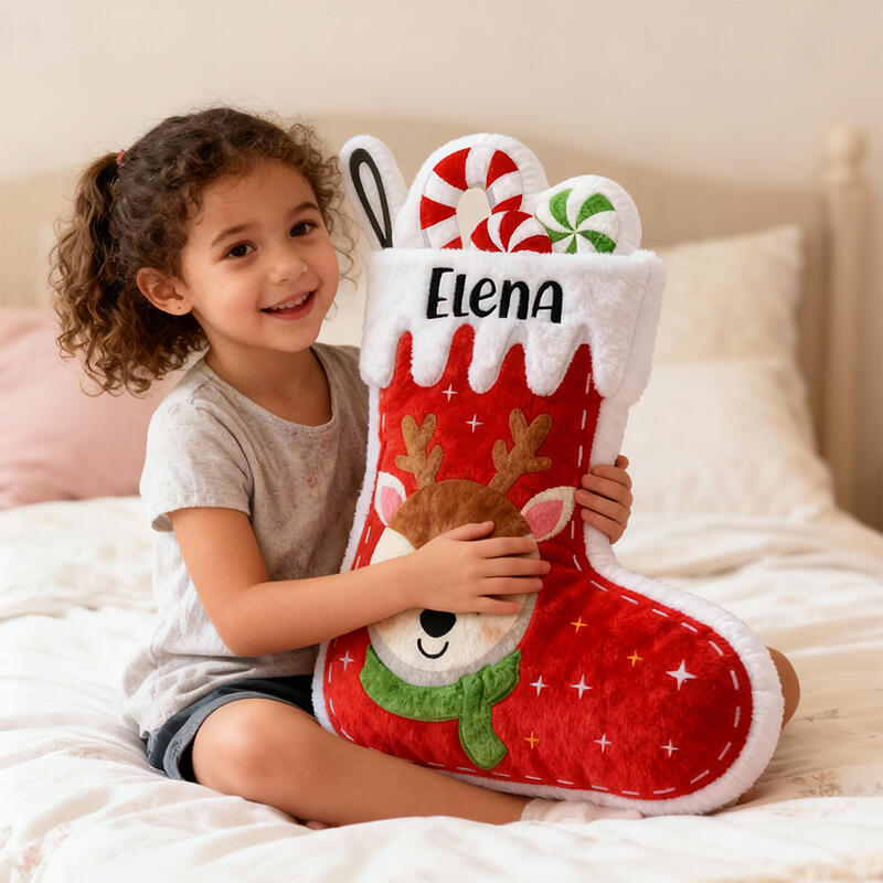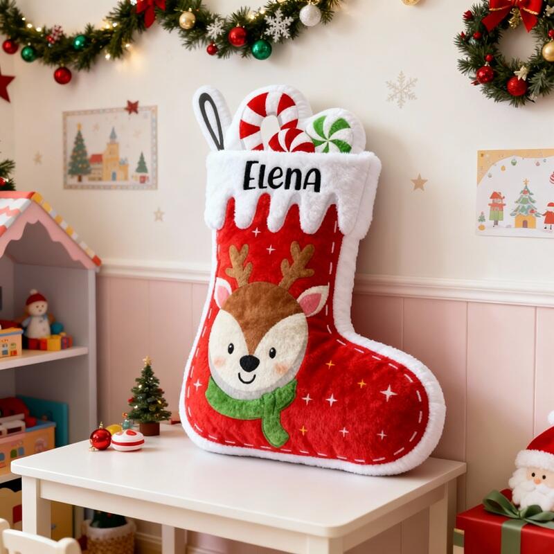 Personalized Stocking-Shaped Pillows Reindeer Custom Name Design Christmas Gift for Kids