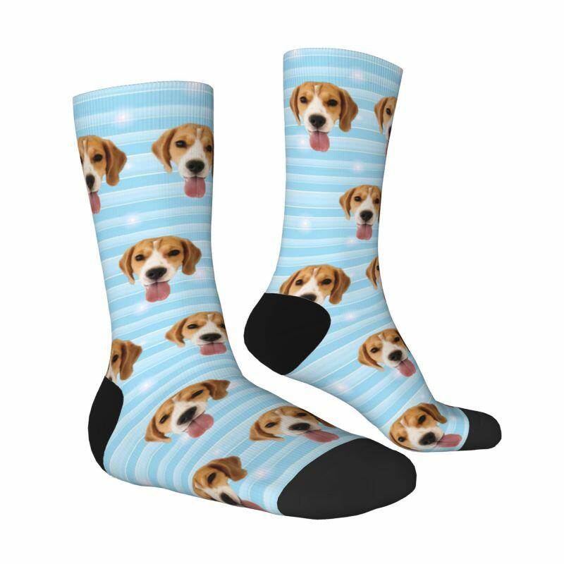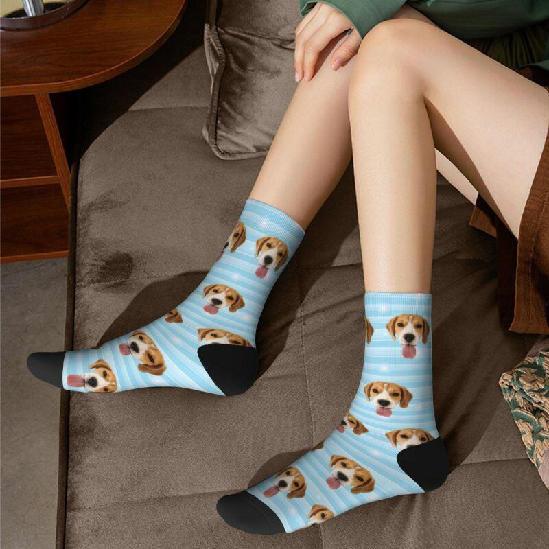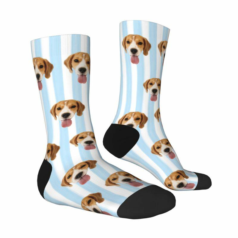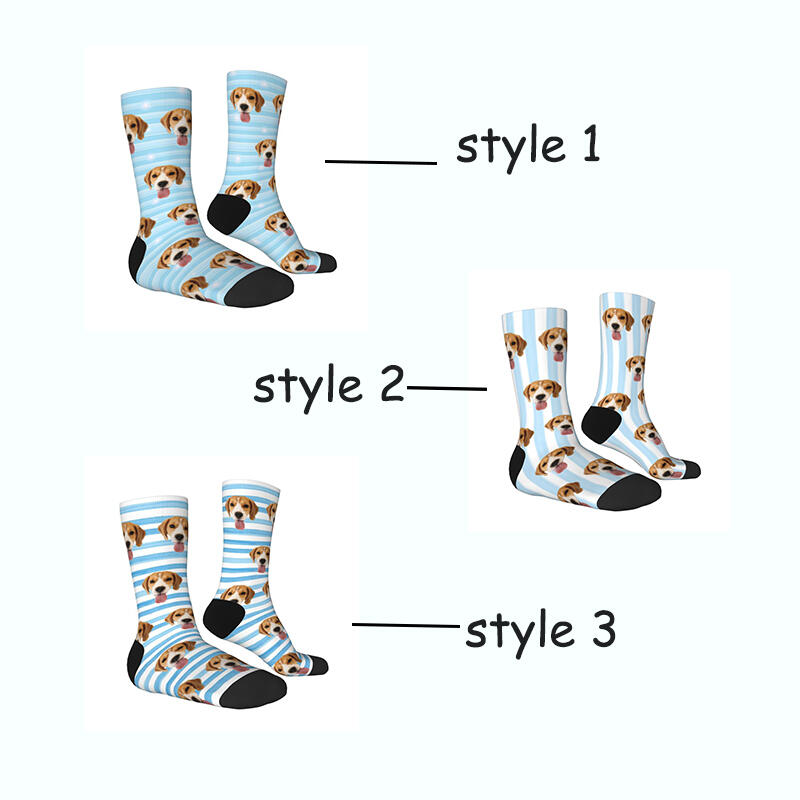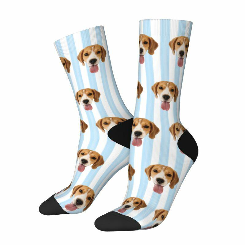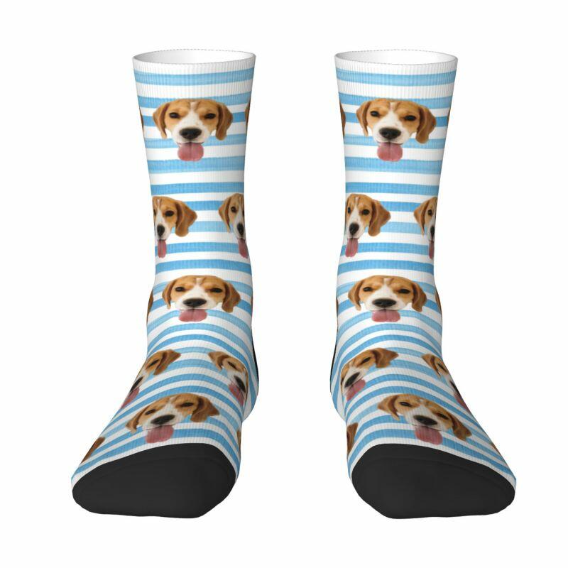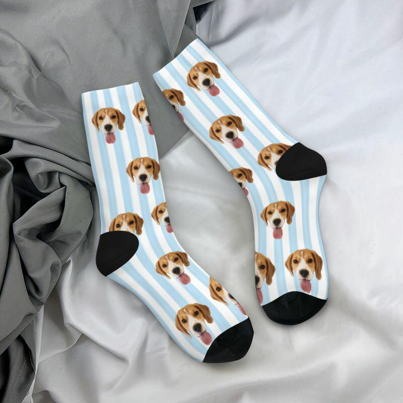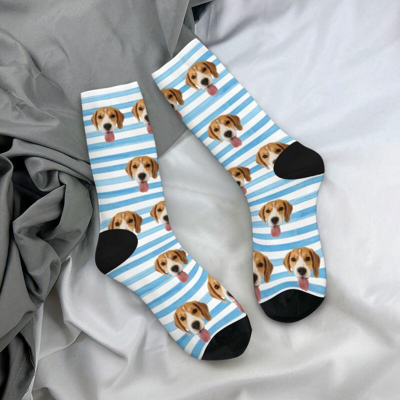 Personalized Striped Face Socks with Pet Photos Added Great Gift for Pet Lovers