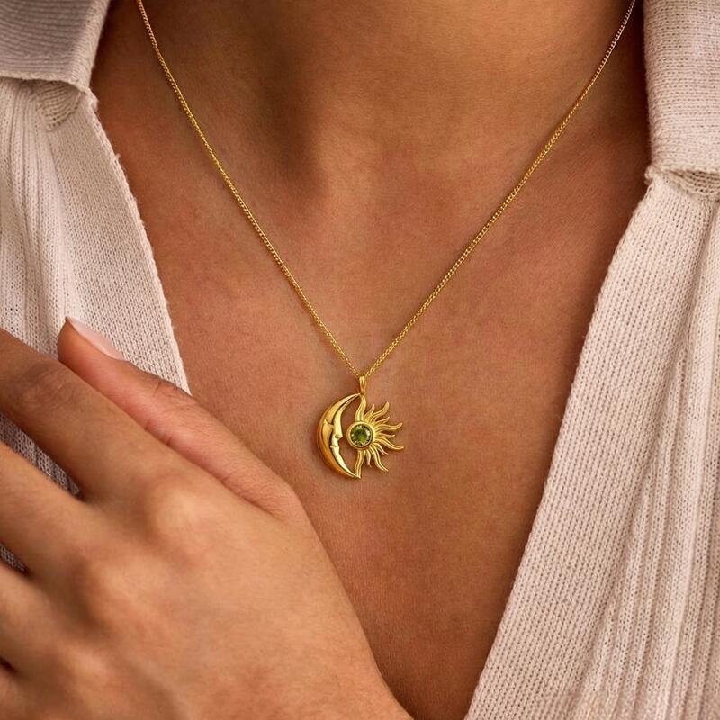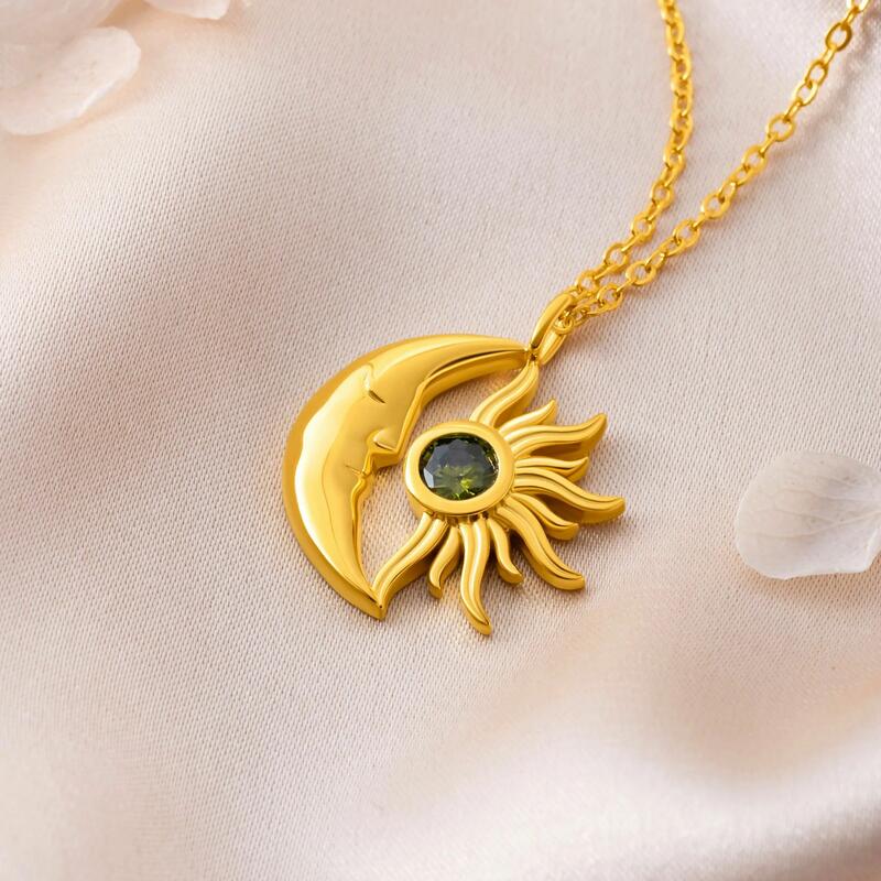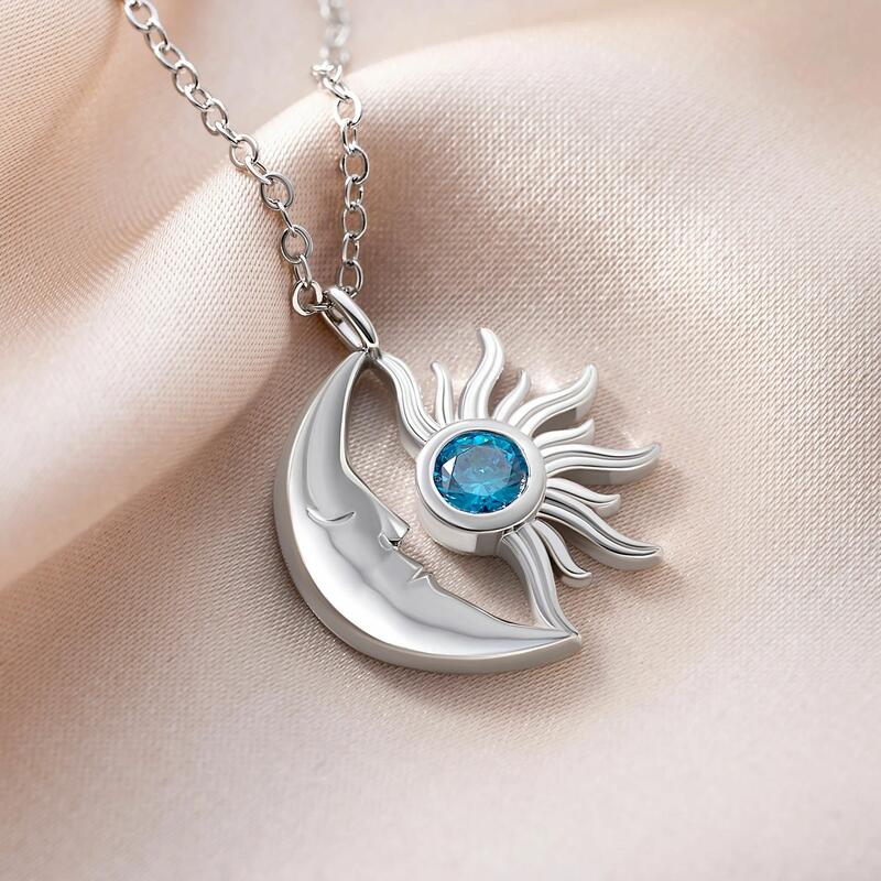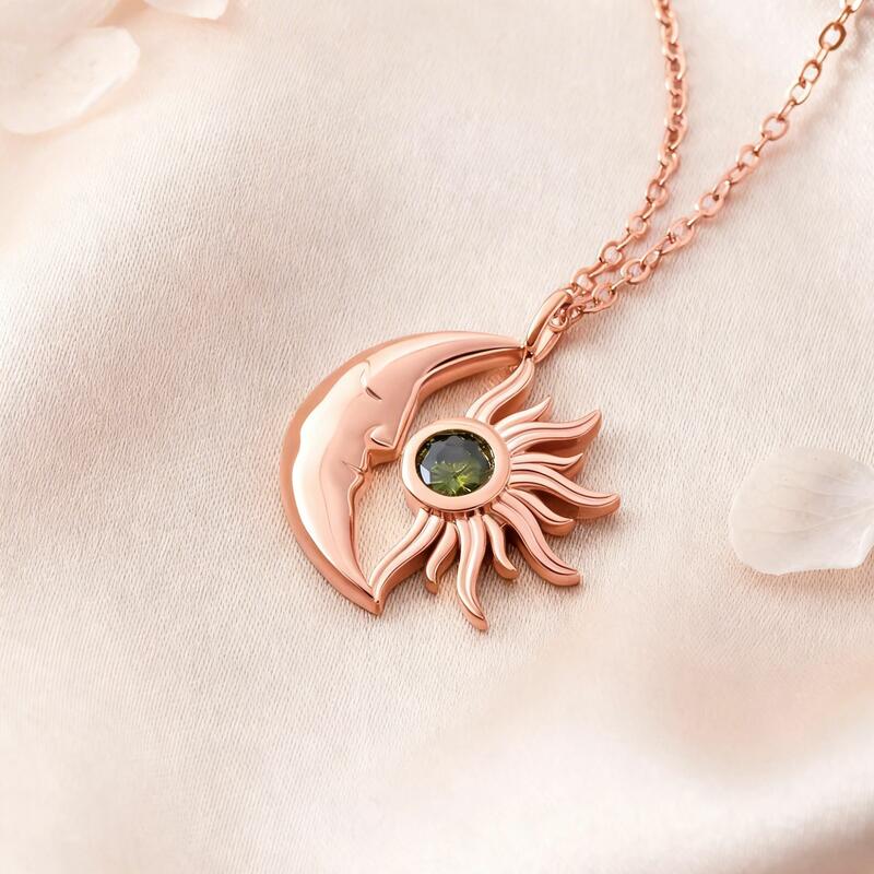 Personalized Sun and Moon Necklace with Birthstone Special Gift for Girls