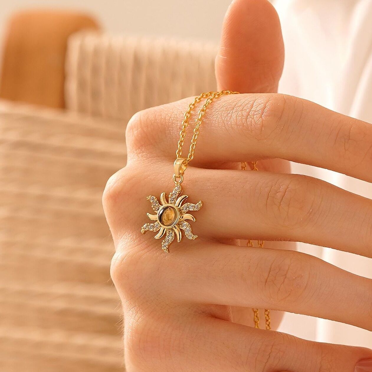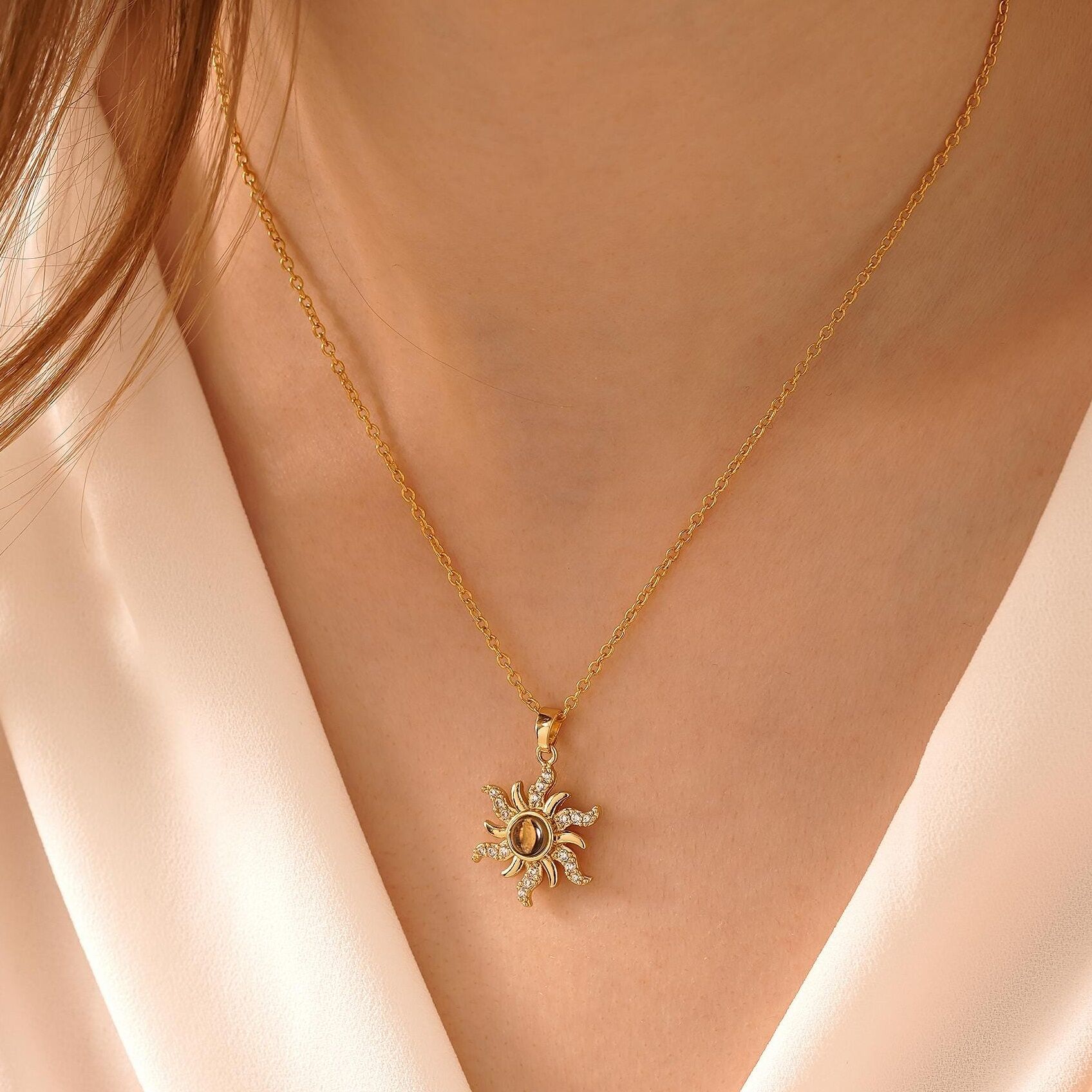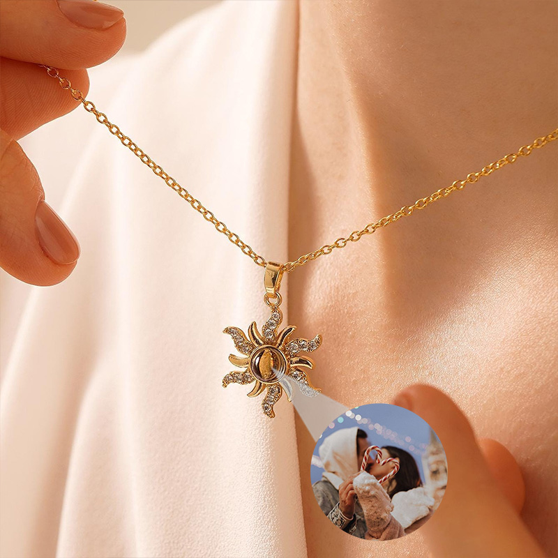 Personalized Sunflower Projection Picture Necklace Exquisite Gift for Couples