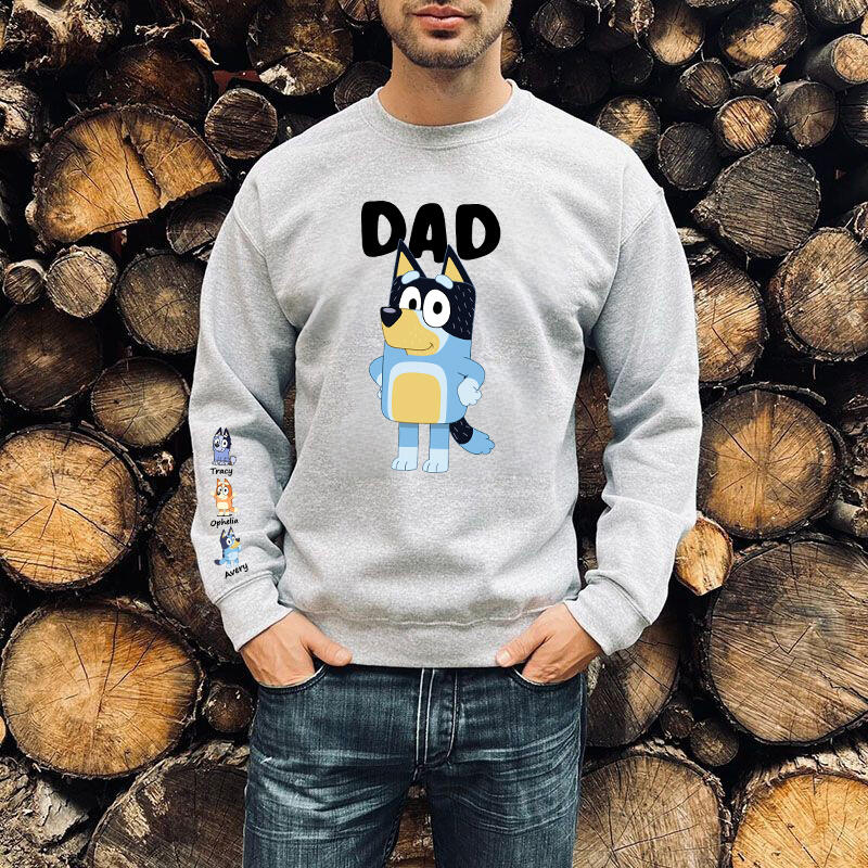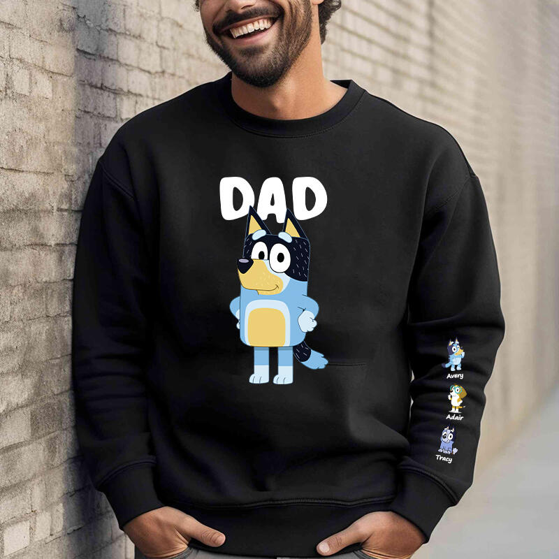 Personalized Sweatshirt Dog Dad with Custom Cute Cartoon Pattern Design Perfect Father's Day Gift