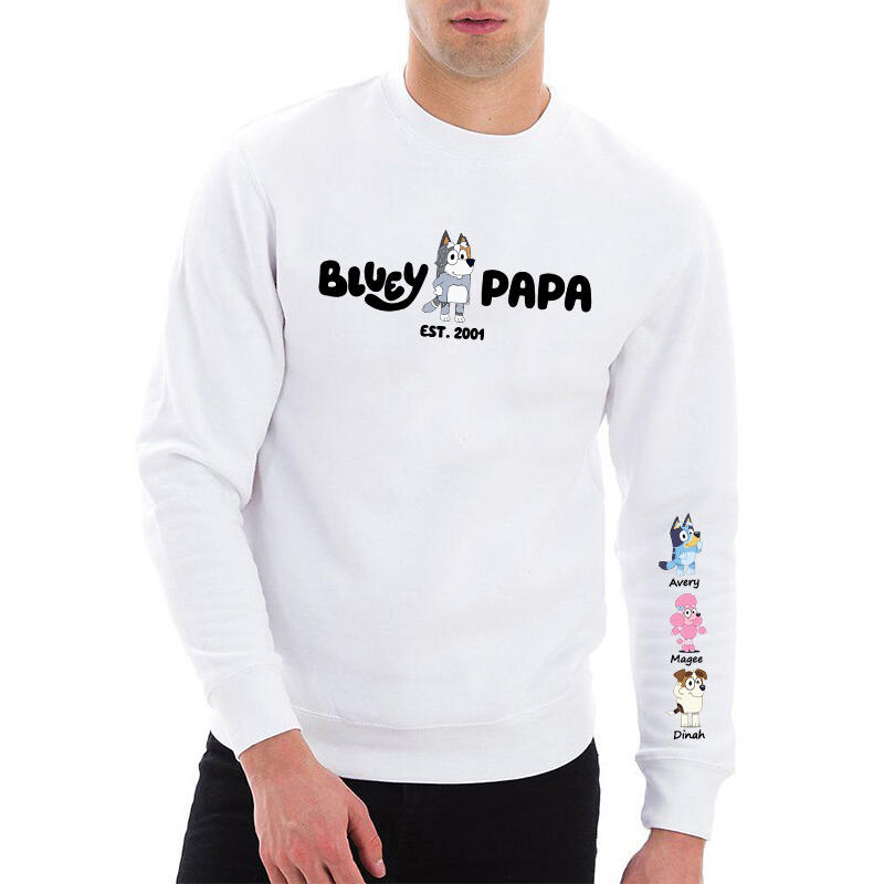 Personalized Sweatshirt Dog Papa Custom Kids Cartoon Pattern Design Perfect Gift for Grandpa