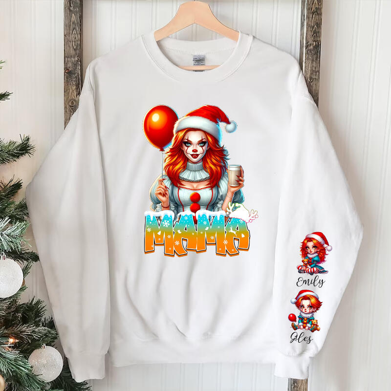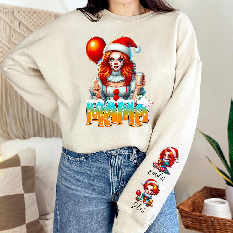 Personalized Sweatshirt Clown Queen Mama Custom Kids Pattern Design Attractive Christmas Gift for Mom